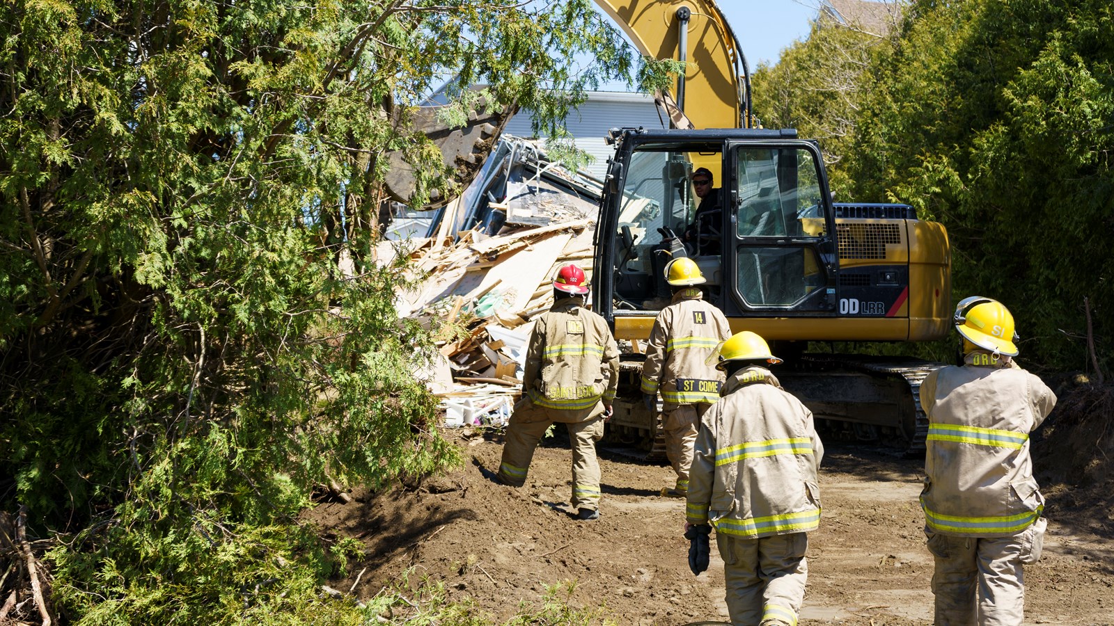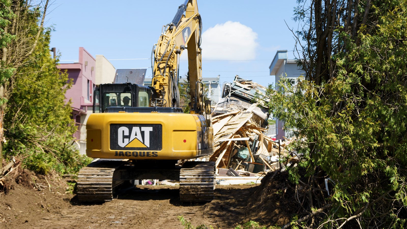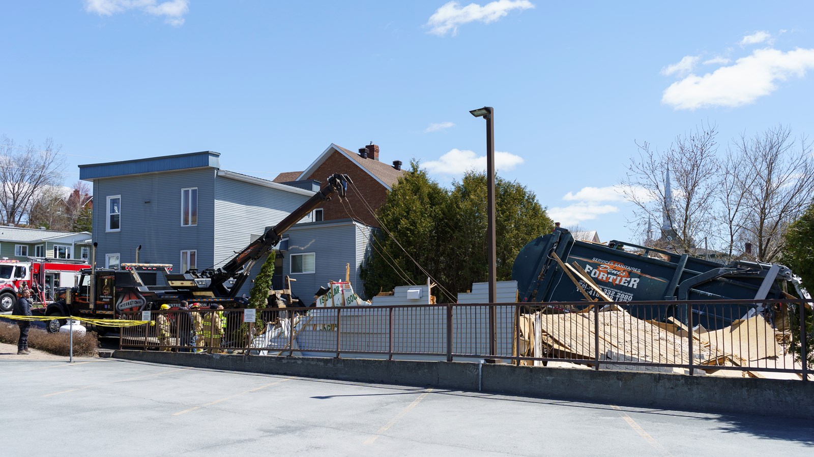 Un camion à ordures a détruit une résidence qui se trouvait le long de la rue Principale, face à la 15e Rue, à Saint-Côme-Linière.
