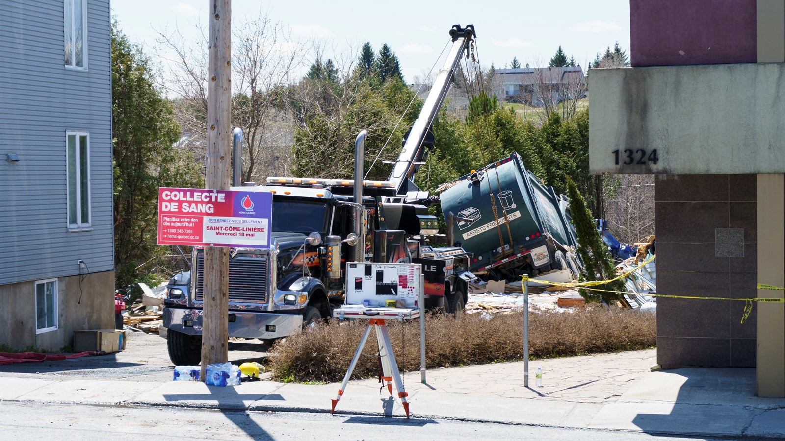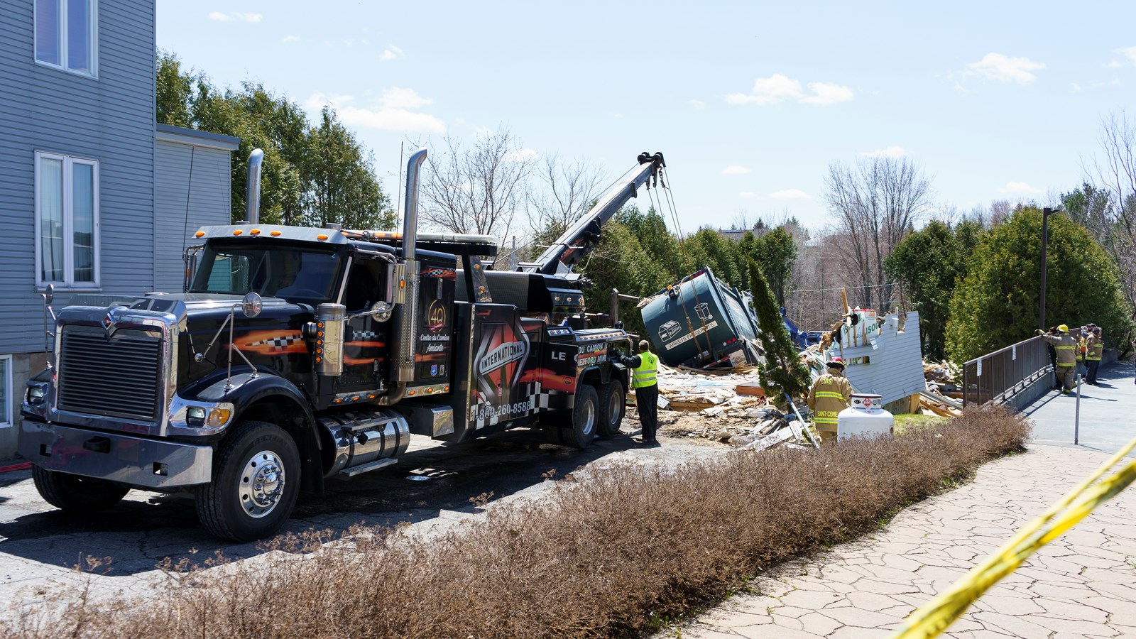 L'opération des remorqueuses pour sortir le véhicule enfoncé dans la résidence est toujours en cours au moment d'écrire ces lignes.