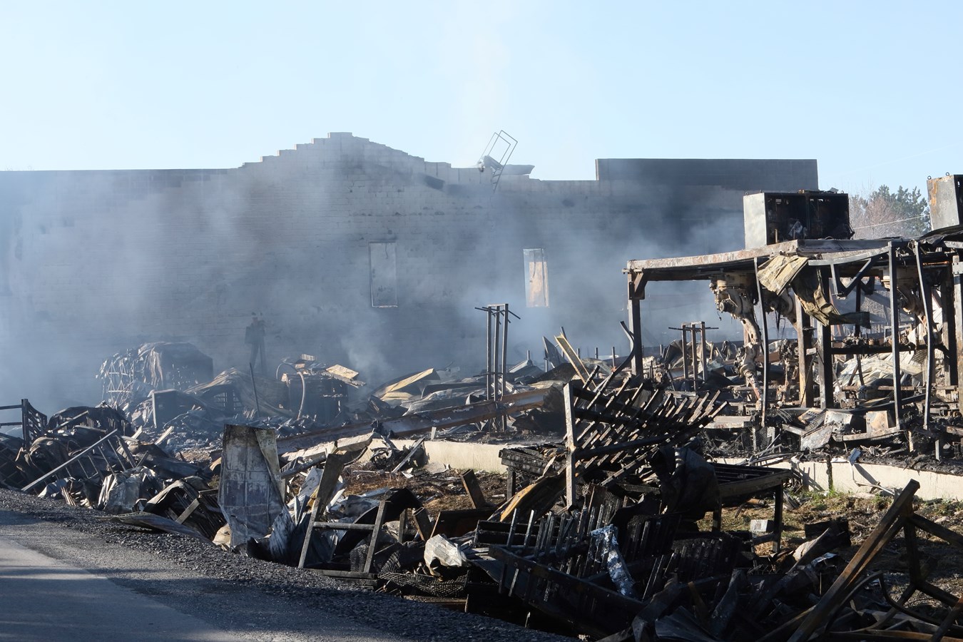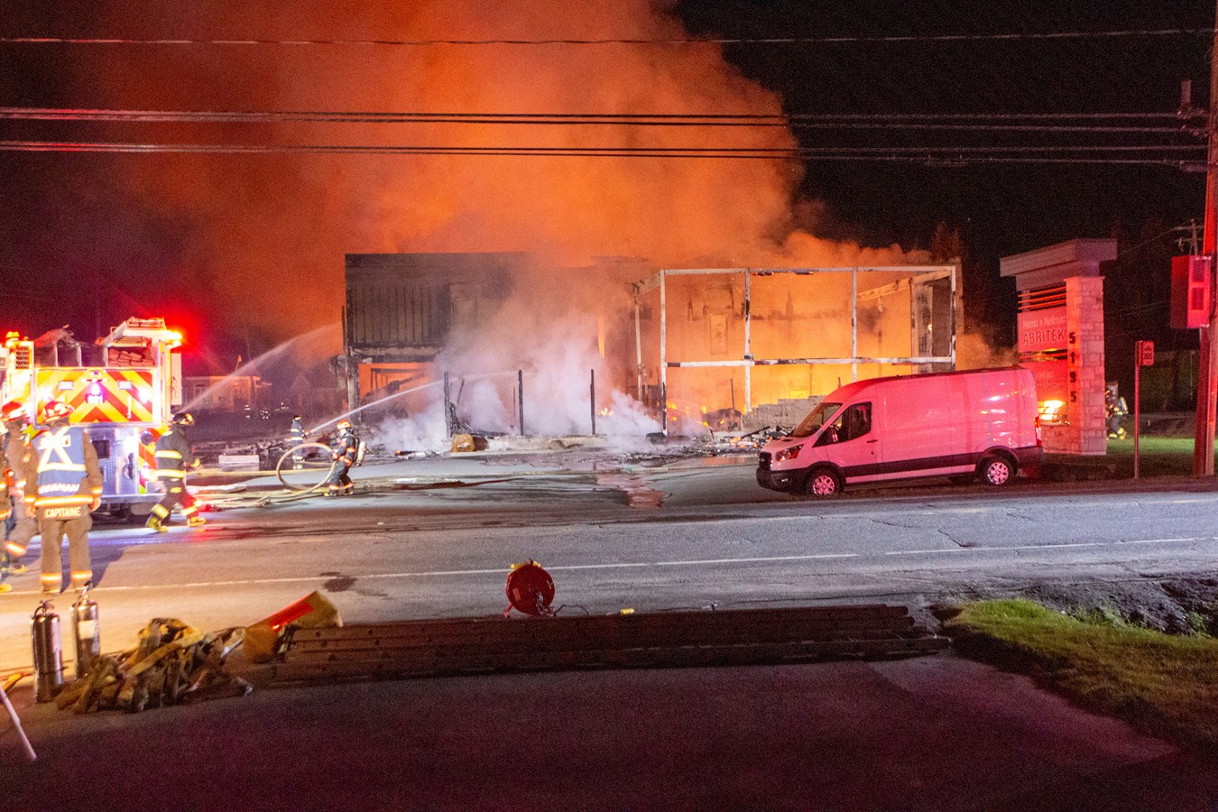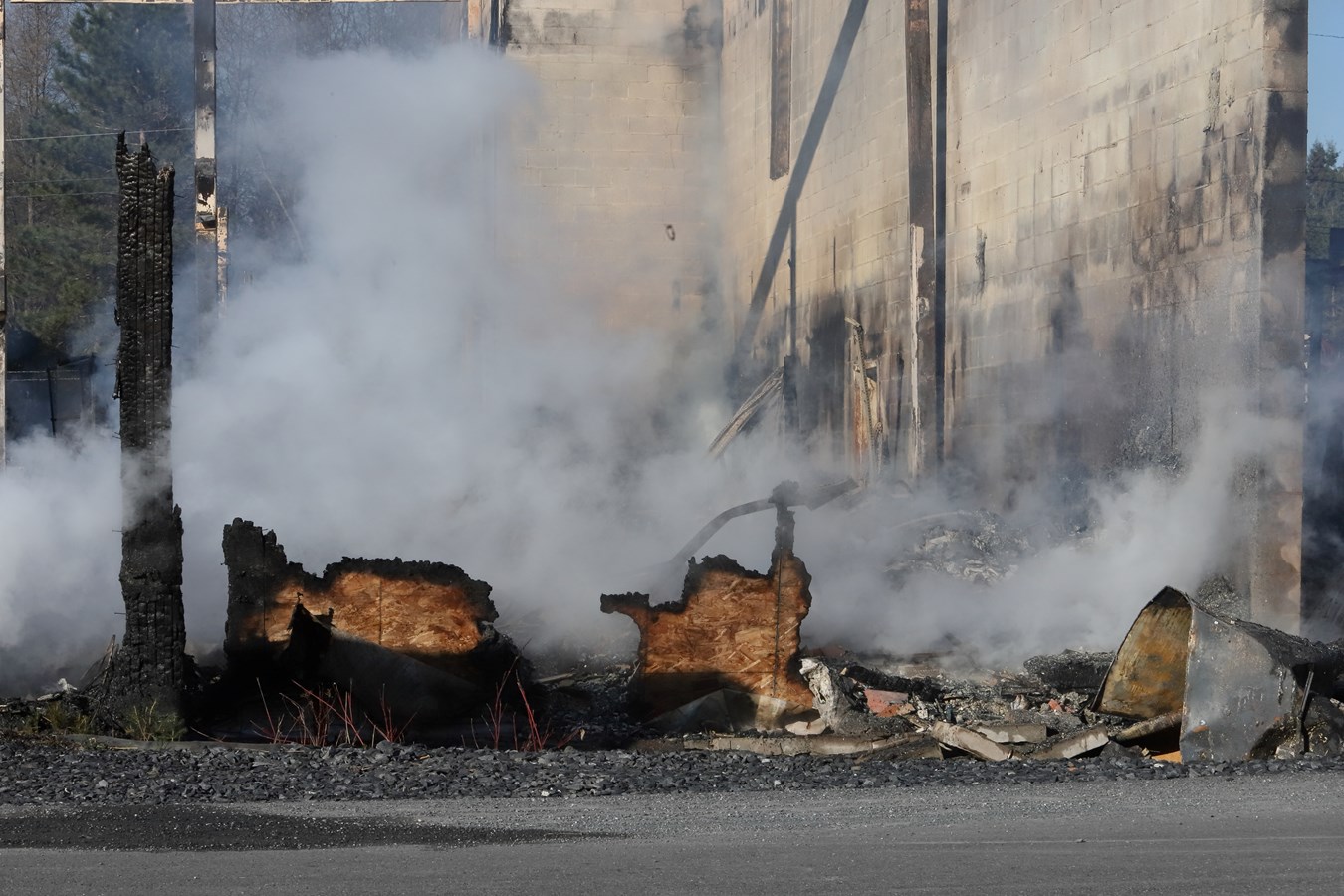 Il ne reste plus rien de l'usine du fabricant de portes et fenêtres Abritek de Saint-Georges, qui a été rasée par les flammes hier soir.