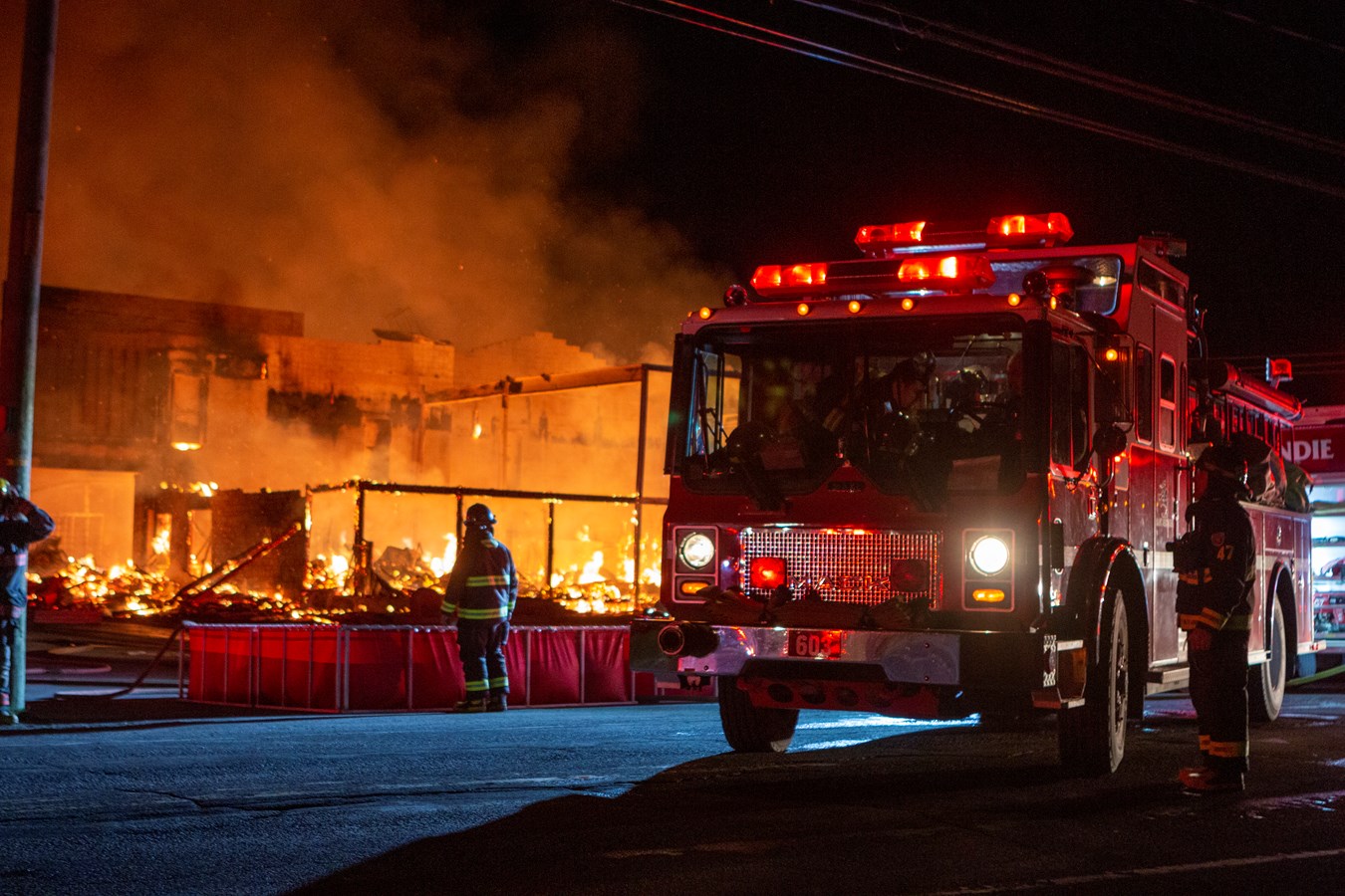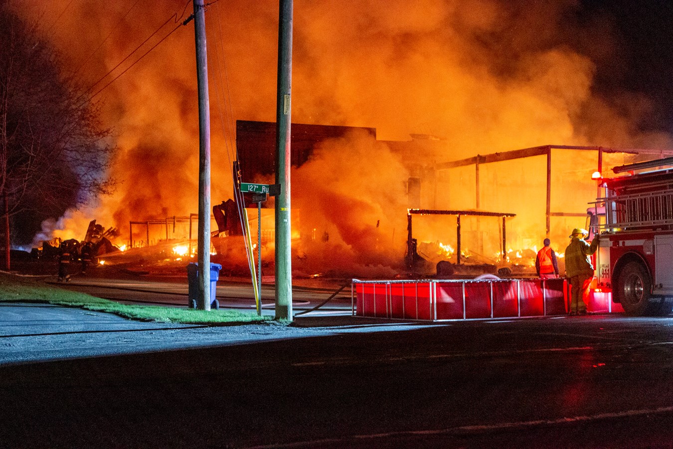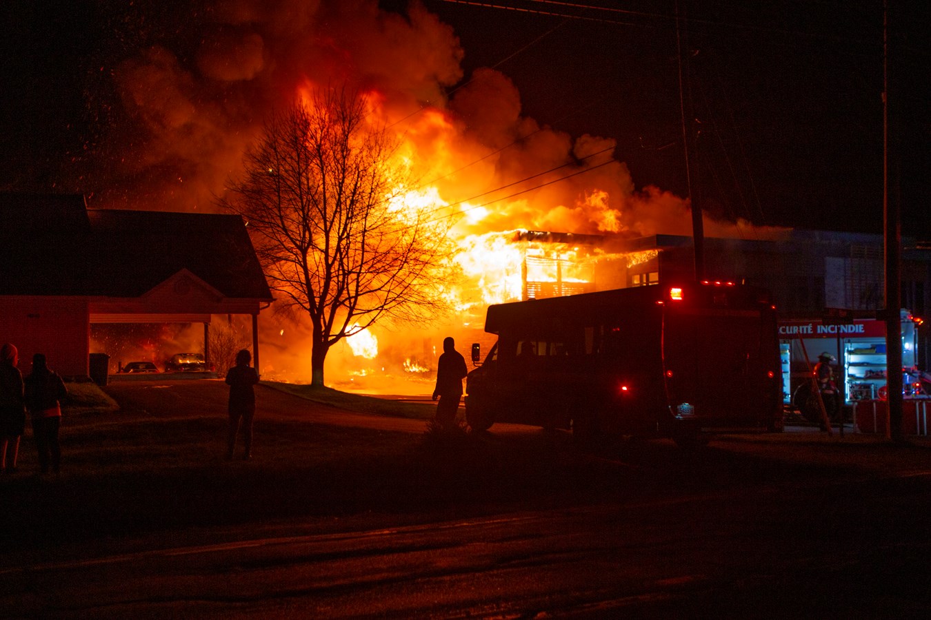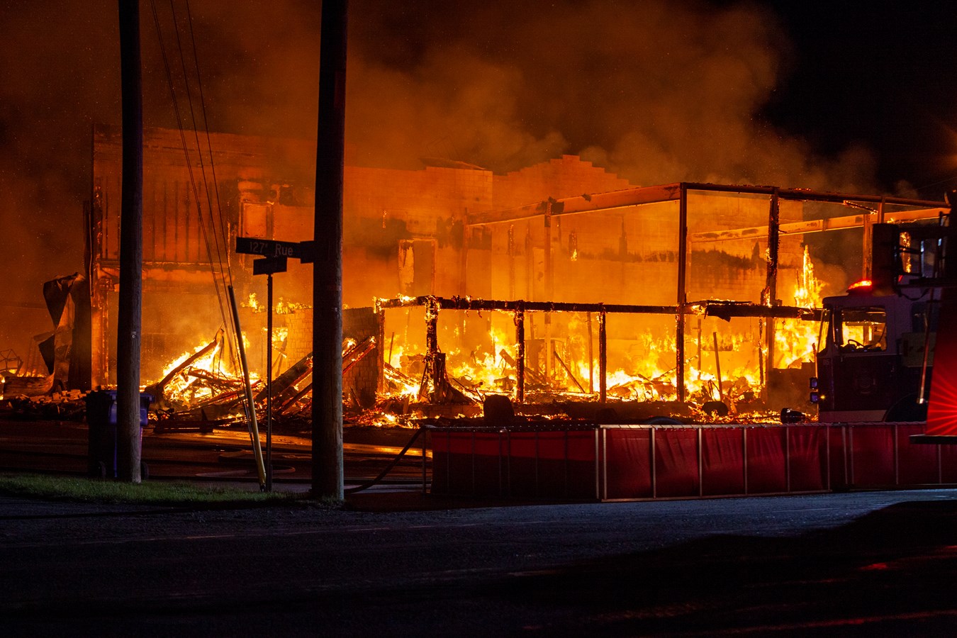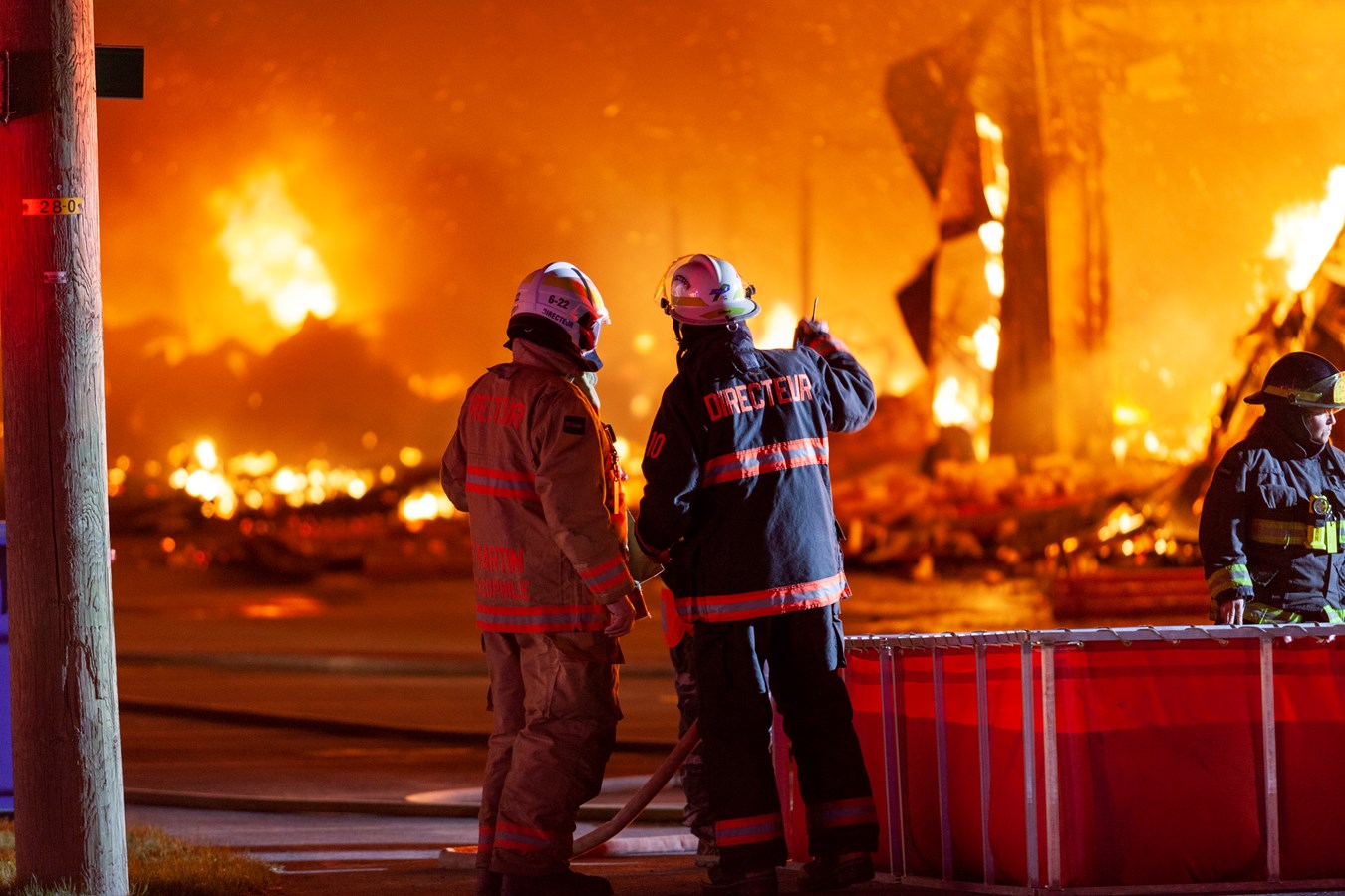 Les pompiers du Service de sécurité incendie de Saint-Georges ont été appelés sur les lieux peu après 22 h et à leur arrivée, déjà la moitié des installations étaient embrasées, a indiqué le directeur adjoint du SSI, Frédéric Morin, lors d'un entretien téléphonique avec EnBeauce.com.