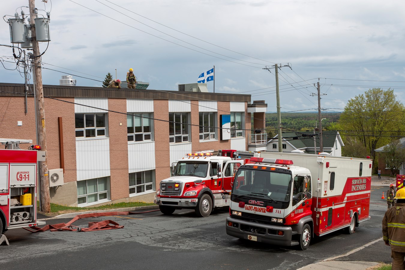 Le lendemain, c’était le tour du Service incendie de Saint-Prosper en collaboration avec le Service incendie de Saint-Zacharie et celui de Sainte-Aurélie, de mettre en pratique leurs compétences. Malheureusement, les exercices se sont vite terminés pour devenir une vraie opération, car une alarme avait été envoyée.