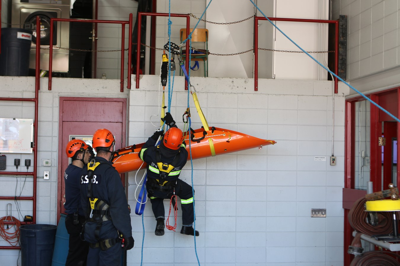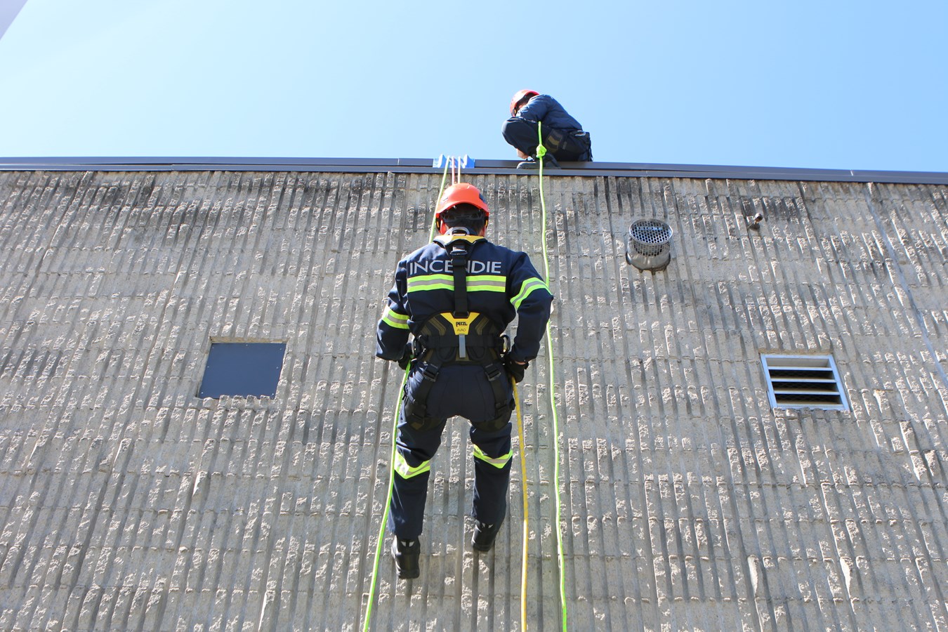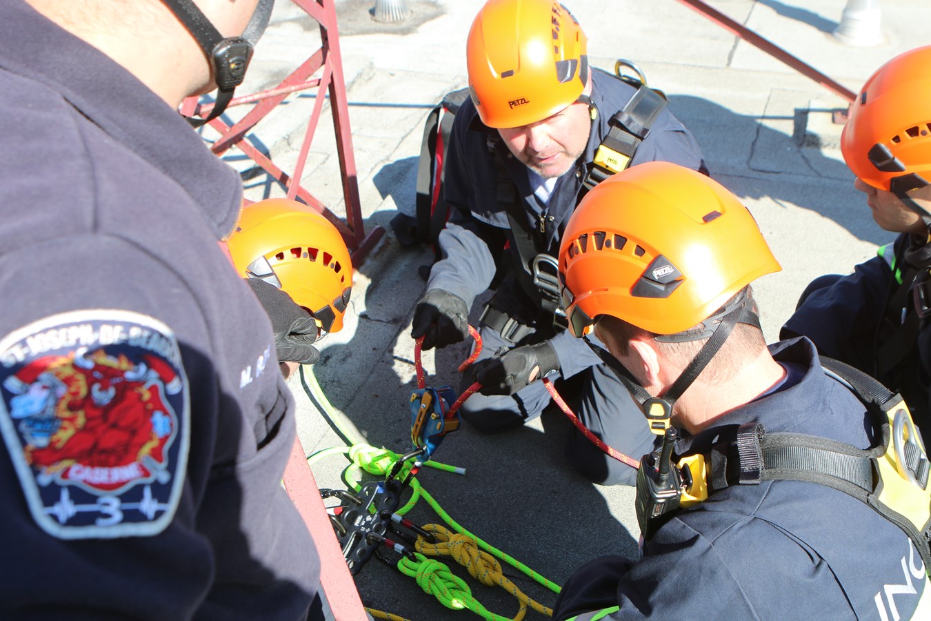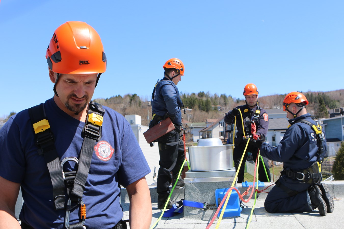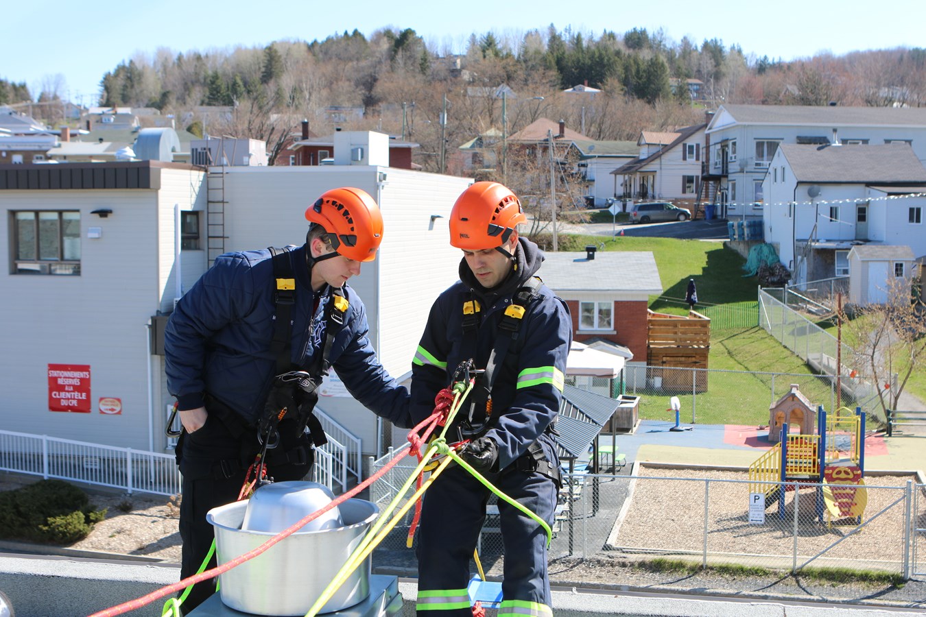 Le premier jour, l'équipe de sauvetage technique de Beauceville et Saint-Joseph-de-Beauce ont fait une pratique de sauvetage en hauteur à l'intérieur et à l'extérieur de la caserne de Beauceville.