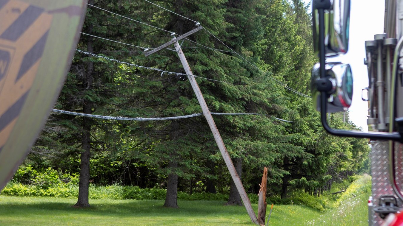Le conducteur a voulu se retourner dans une entrée, mais le haut de son véhicule s’est coincé dans les fils électriques, qui selon le chef du service incendie étaient trop bas. Par ce mouvement, deux poteaux d’Hydro ont cédé causant une panne électrique majeure dans la municipalité.