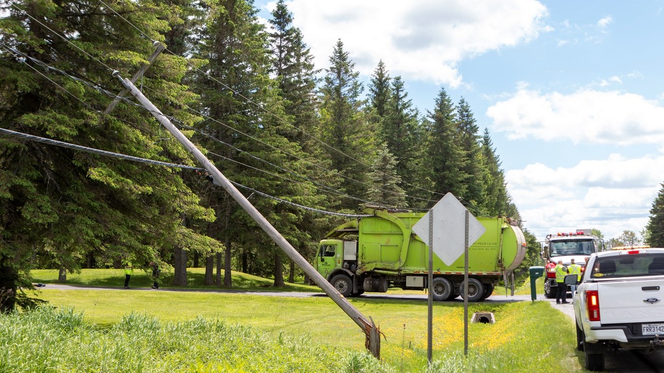 Vers 12 h 10, le Service incendie de Saint-Martin/Saint-Théophile est intervenu sur la route 204 Sud à Saint-Martin, alors qu’un camion à ordures a causé des dommages à des poteaux d’Hydro-Québec.