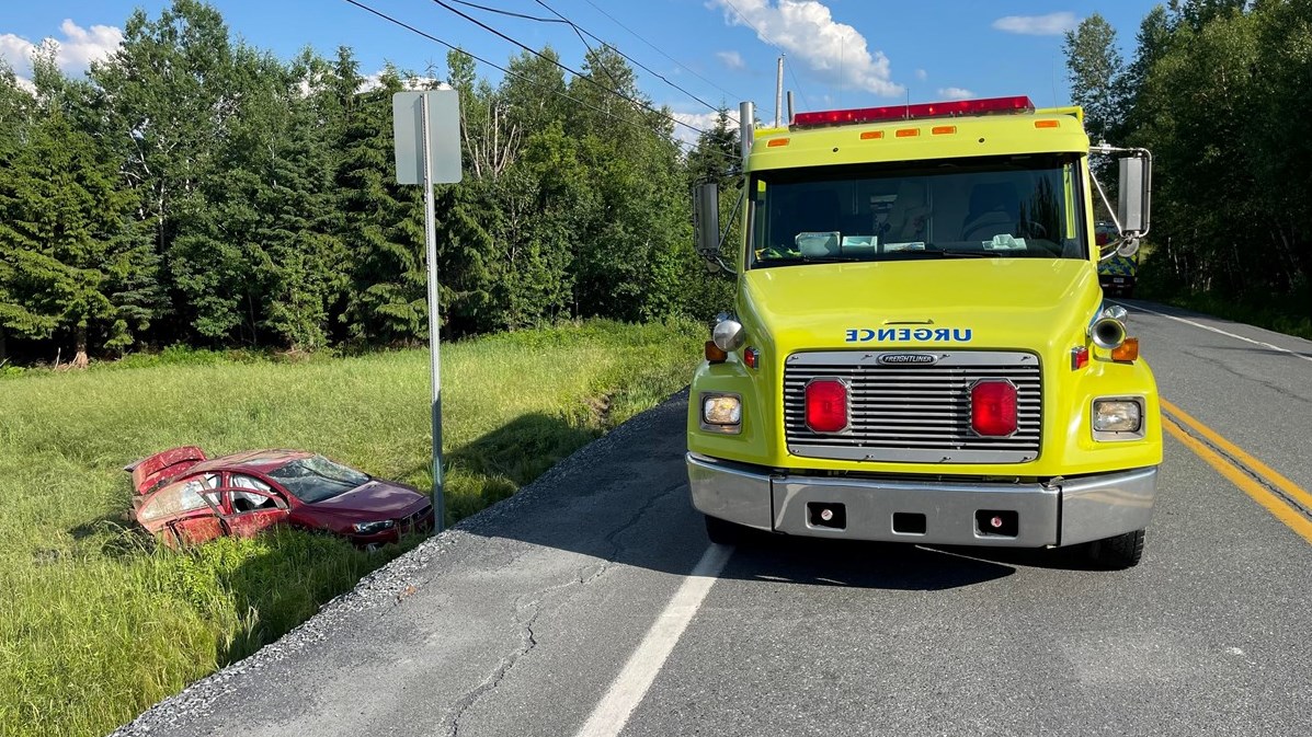Une voiture a fait une sortie de route vers 16 h 15, près du numéro 2 900 chemin Royal à Notre-Dame-des-Pins.