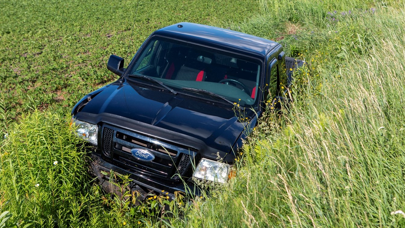 Un véhicule avait fait une sortie de route et avait terminé son chemin dans un fossé.