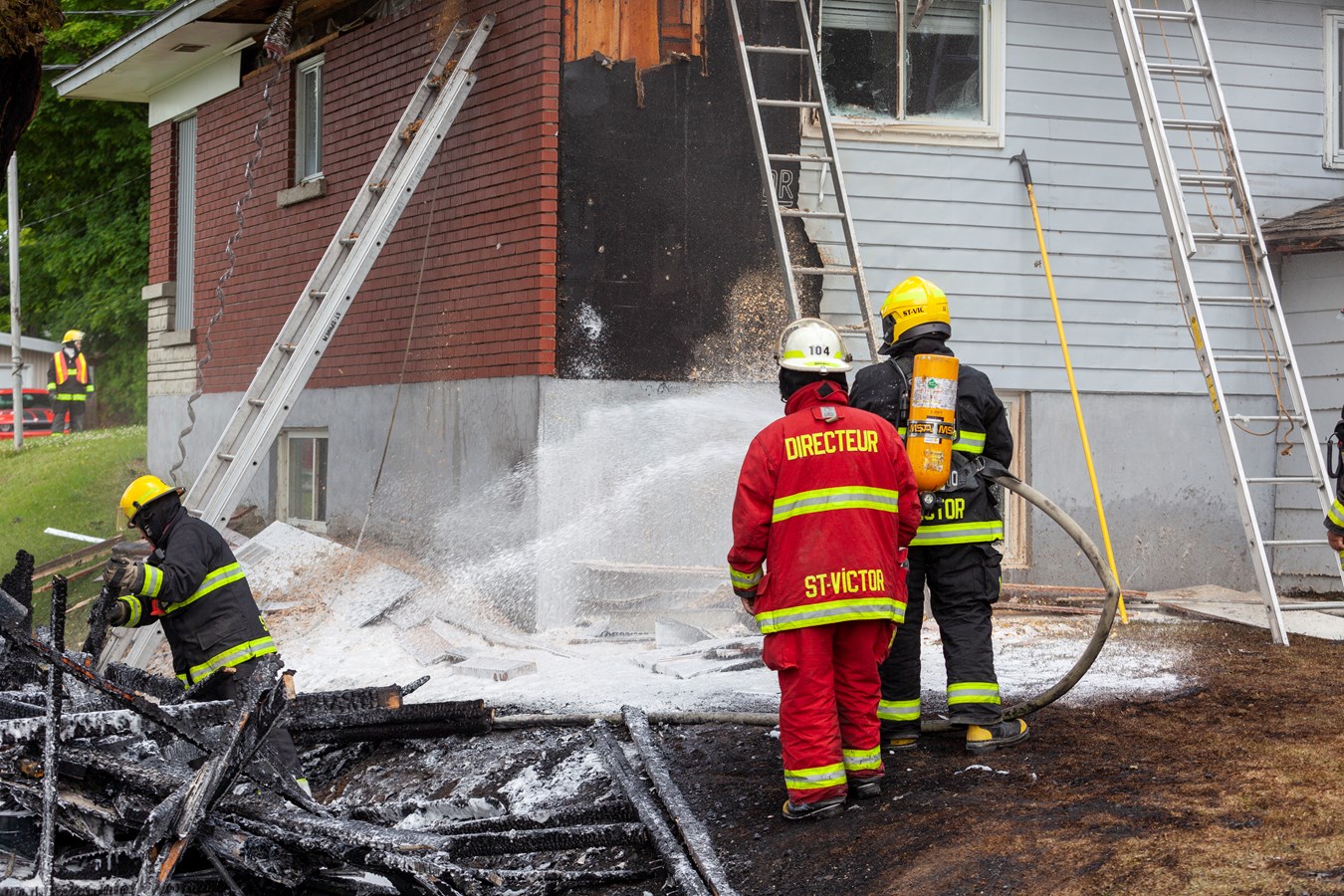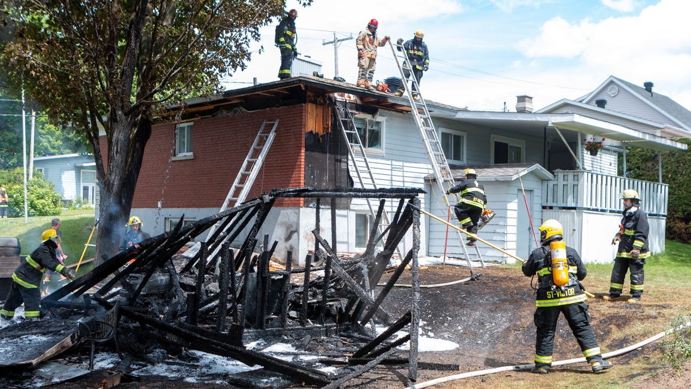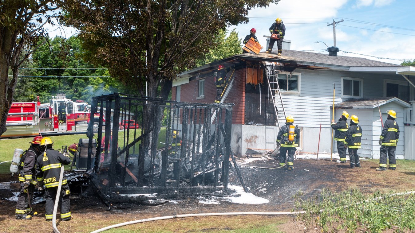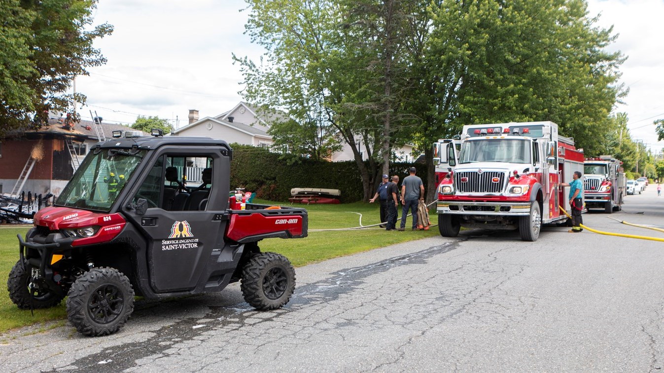 Le Service de sécurité incendie (SSI) de Saint-Victor a été appelé sur place. À l'arrivée du premier pompier, le feu du cabanon était déjà éclaté. La colonne de fumée noire était visible depuis Beauceville.