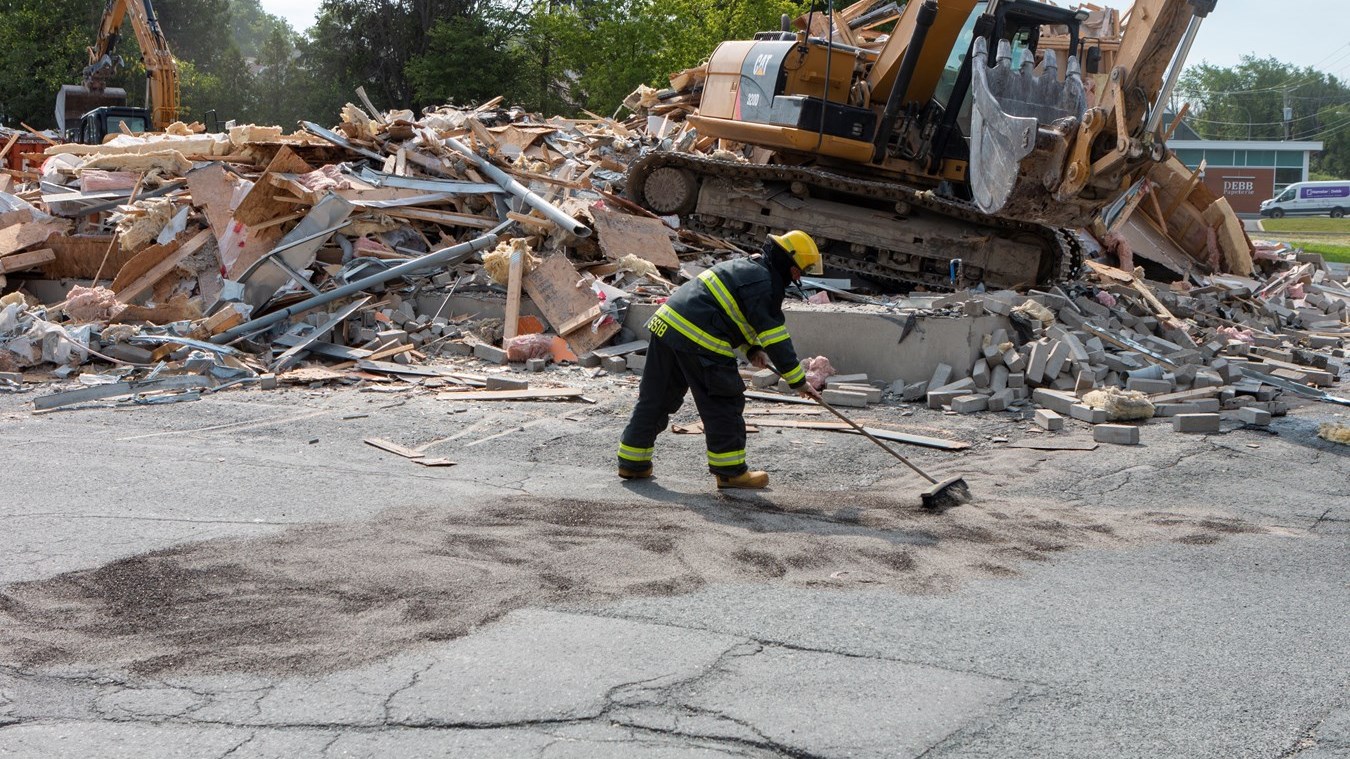 Un important déversement d'huile s'est produit ce matin durant la démolition de l'édifice situé au 668, boulevard Renault à Beauceville.