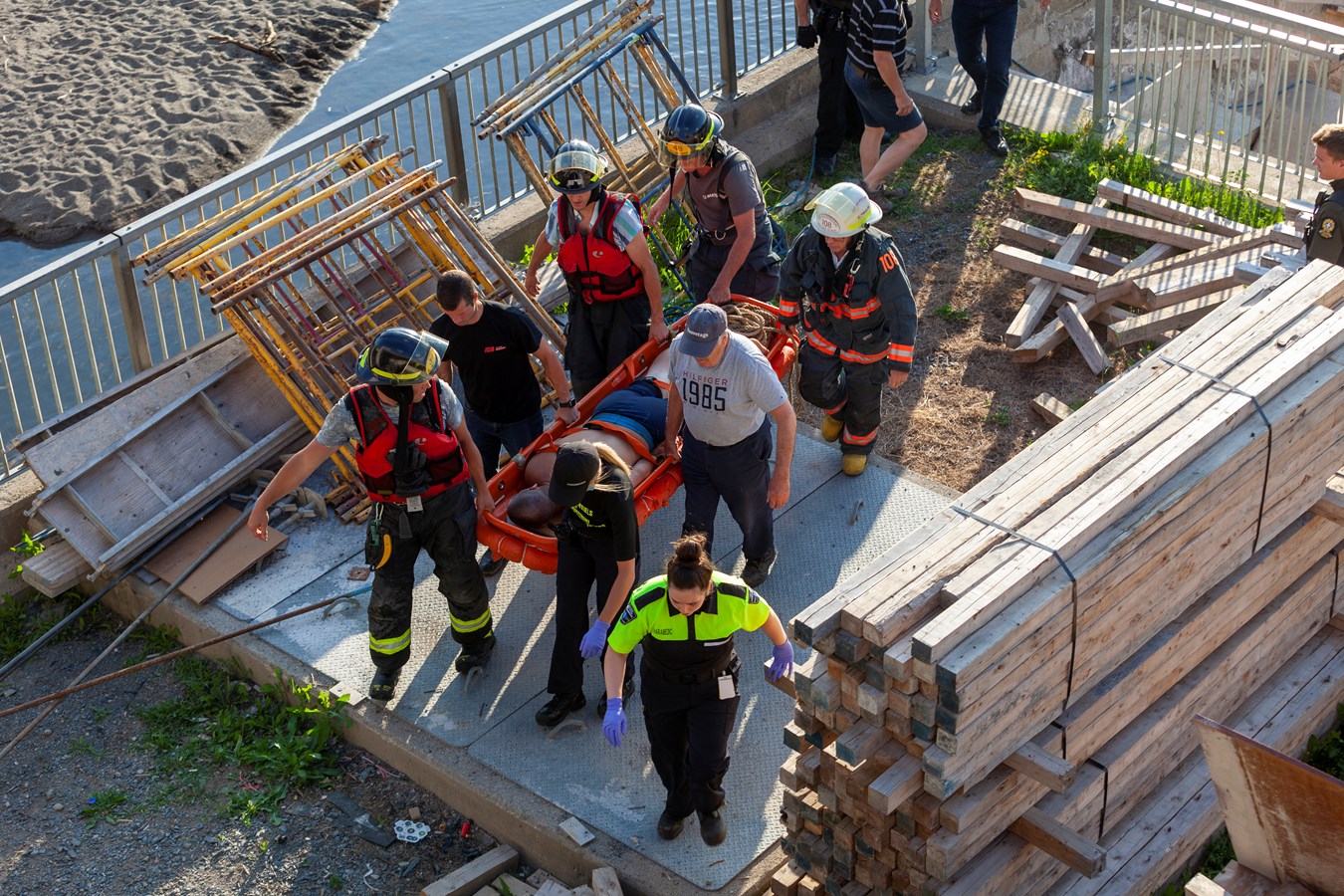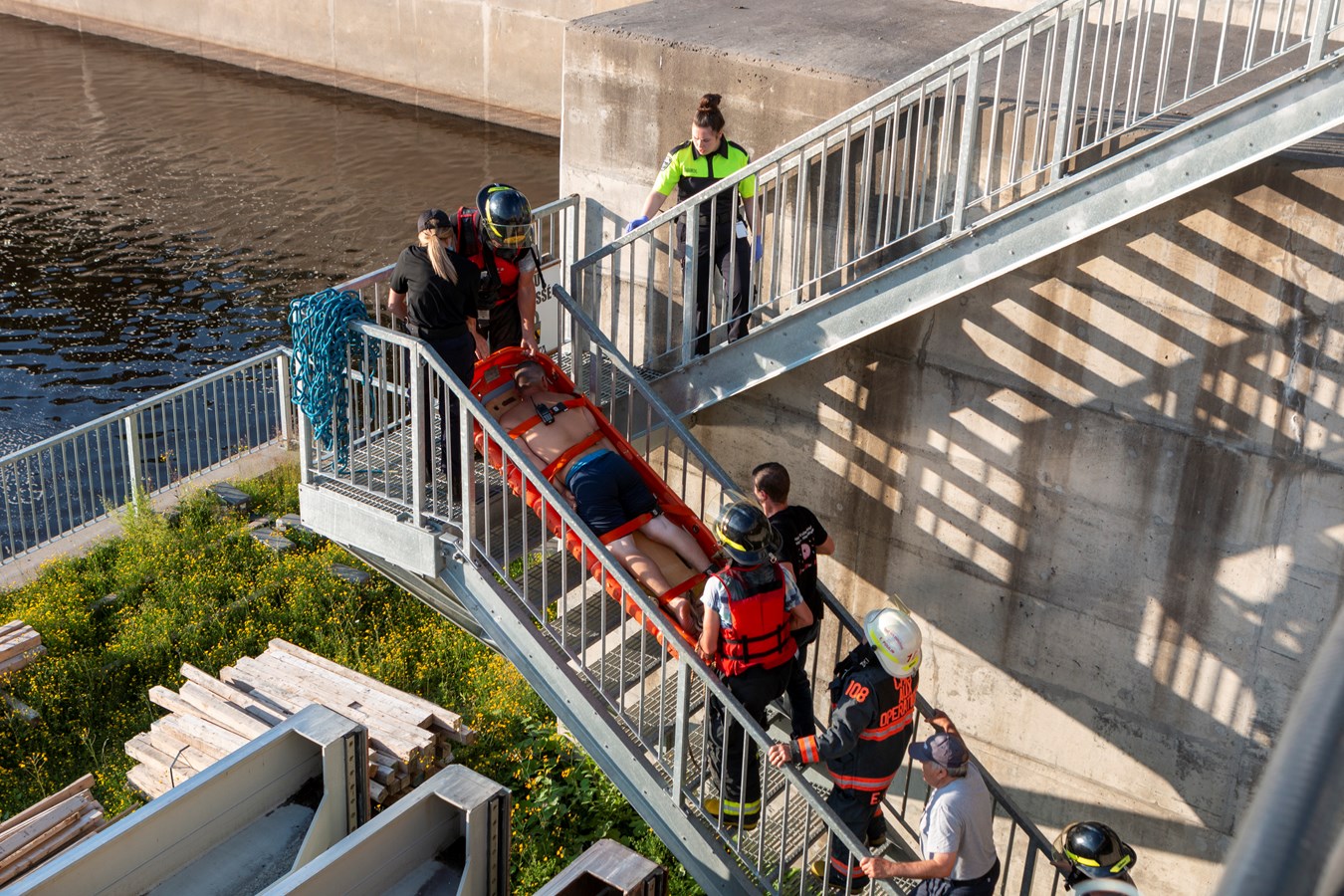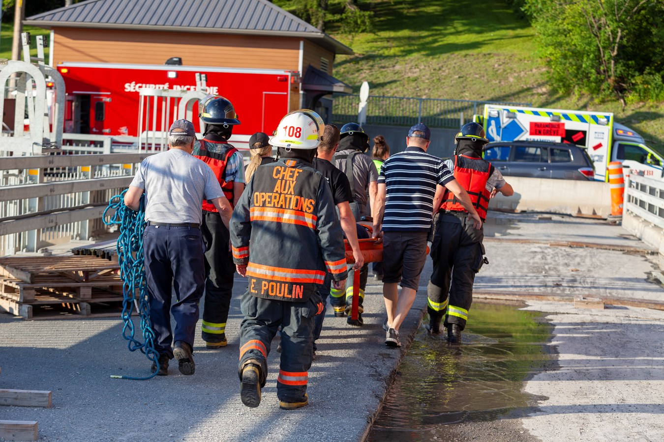 Les ambulanciers ont alors demandé l'intervention du Service de sécurité incendie de Saint-Georges ainsi que son équipe de sauvetage pour venir à la rescousse des estivaliers.