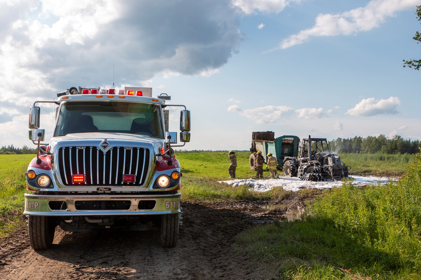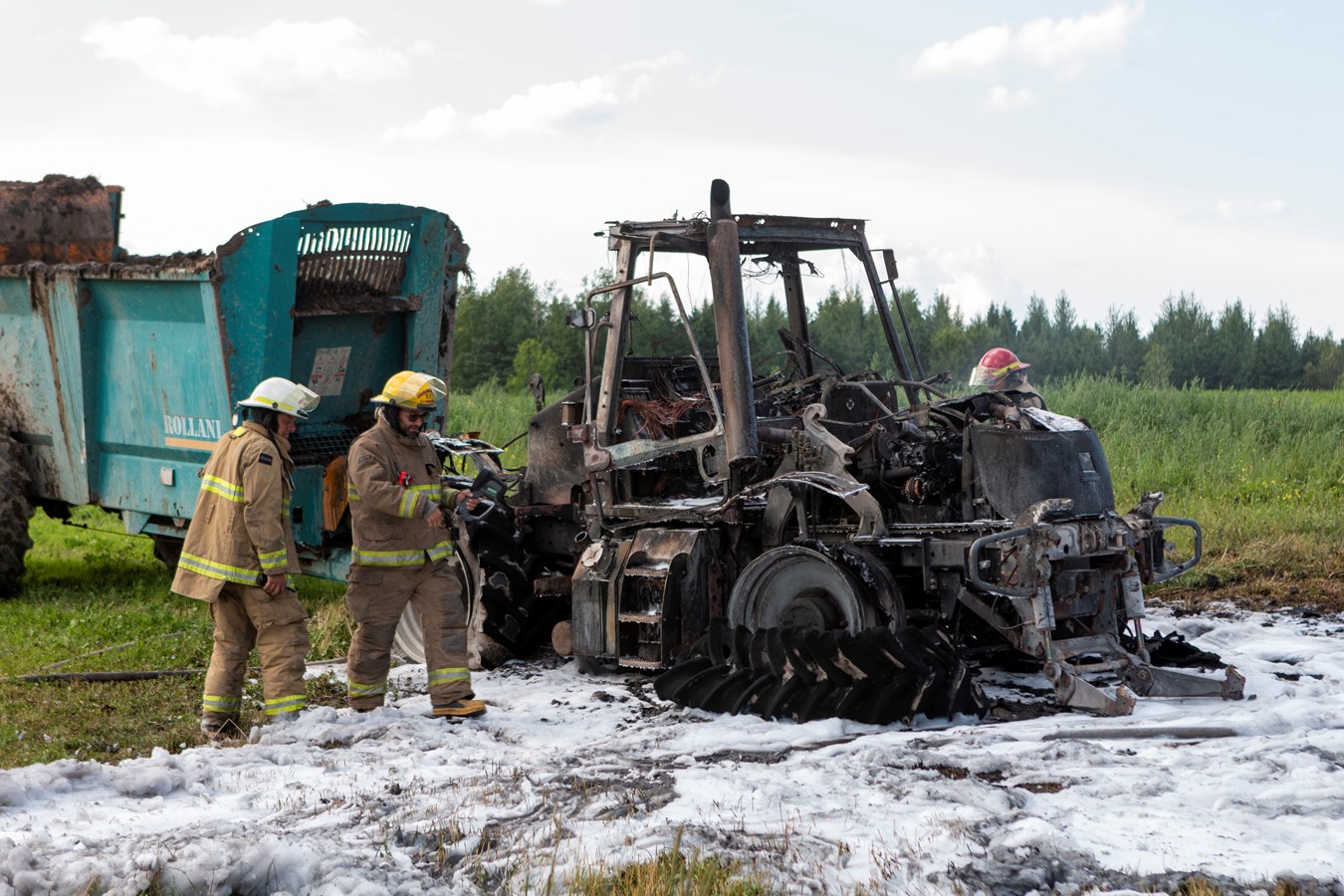 La cause de l’incendie demeure inconnue, mais il n’y a eu aucun blessé. Le tracteur est une perte totale.