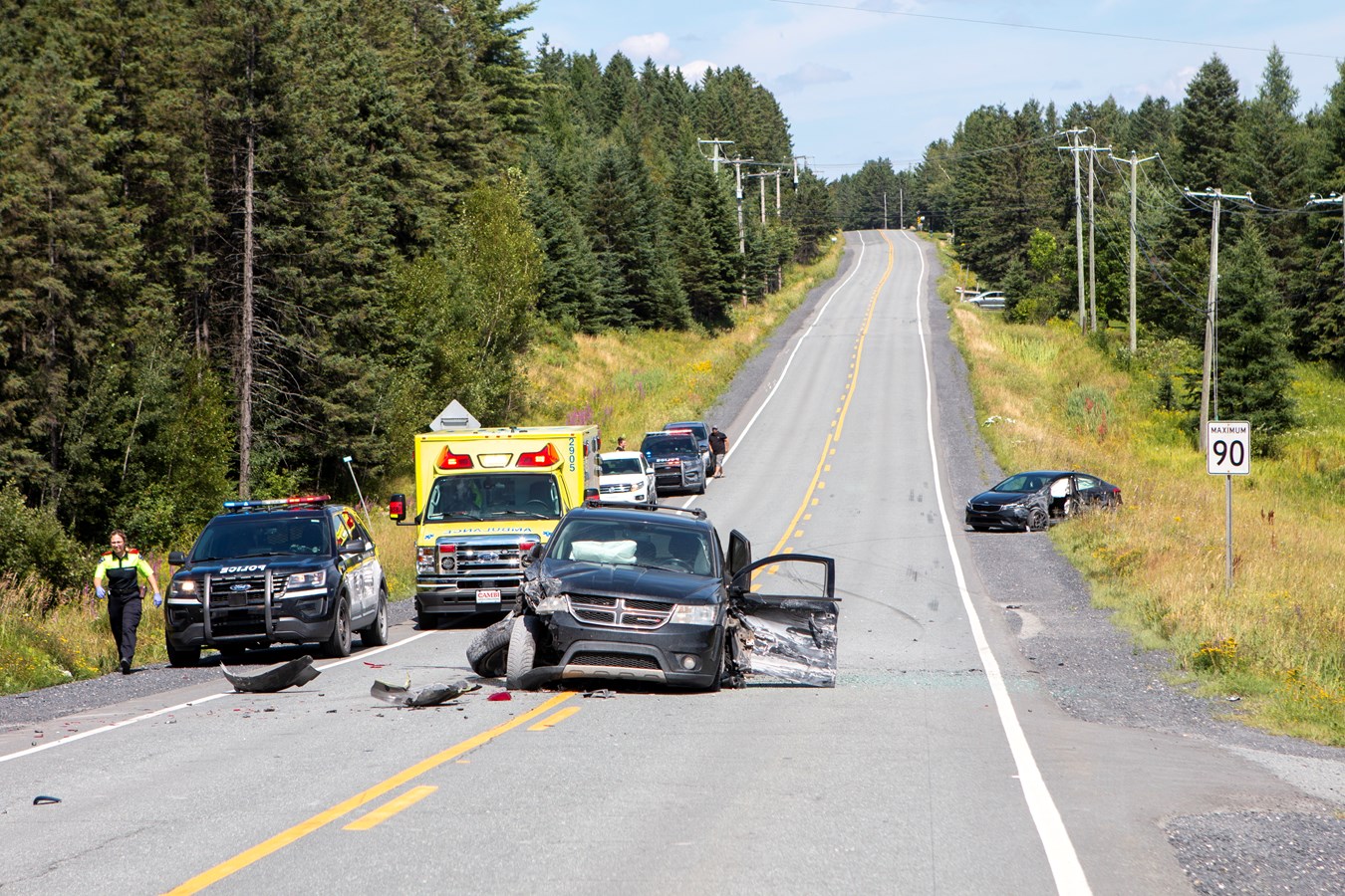 L'agent de communication de la Sûreté du Québec, Stéphane Tremblay, a expliqué les circonstances de l'accident. Une première voiture était arrêtée sur la route pour effectuer un virage à gauche. Un deuxième véhicule était arrêté derrière. Cependant, une troisième voiture est arrivée par l'arrière, après avoir effectué un dépassement, mais n'avait pas vu les deux premiers véhicules. Pour éviter de les percuter, le conducteur s'est déporté sur la voie d'en face où il a finalement frappé un quatrième véhicule arrivant en sens inverse. Par la force de l'impact, les quatre voitures ont été impliquées.