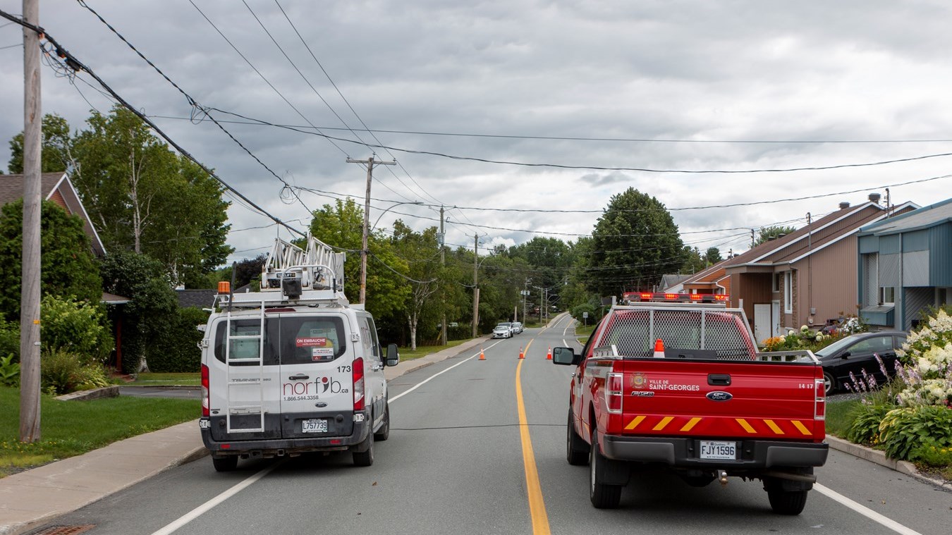 Un peu plus tard, un camion girafe a accroché des câbles de télécommunications sur la 1re avenue à Saint-Georges. Ceux-ci reliaient cinq résidences, mais aucune d'elles n'a été endommagée. Le Service de sécurité incendie de la ville a bloqué la route le temps que Cogeco puisse intervenir.