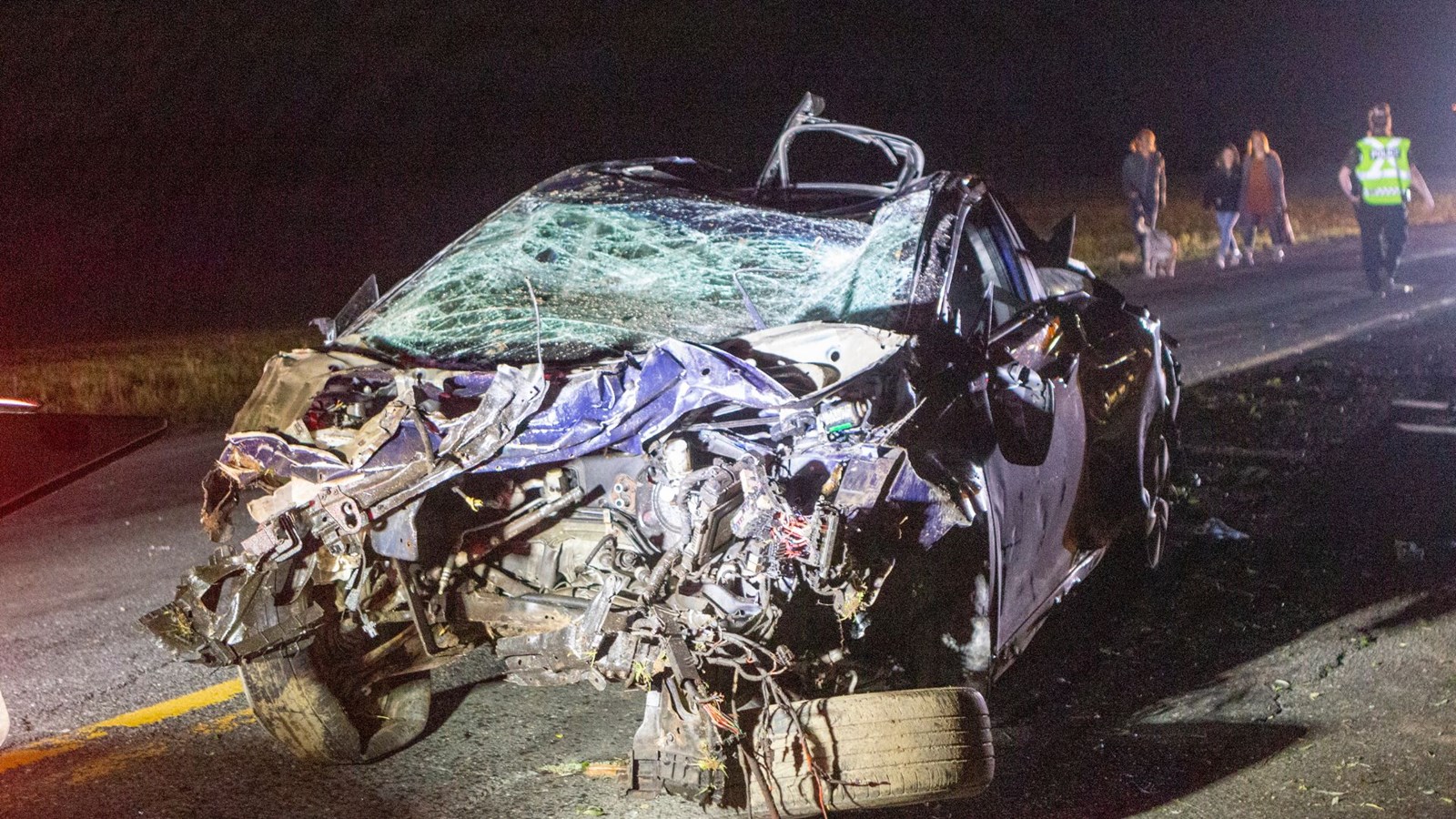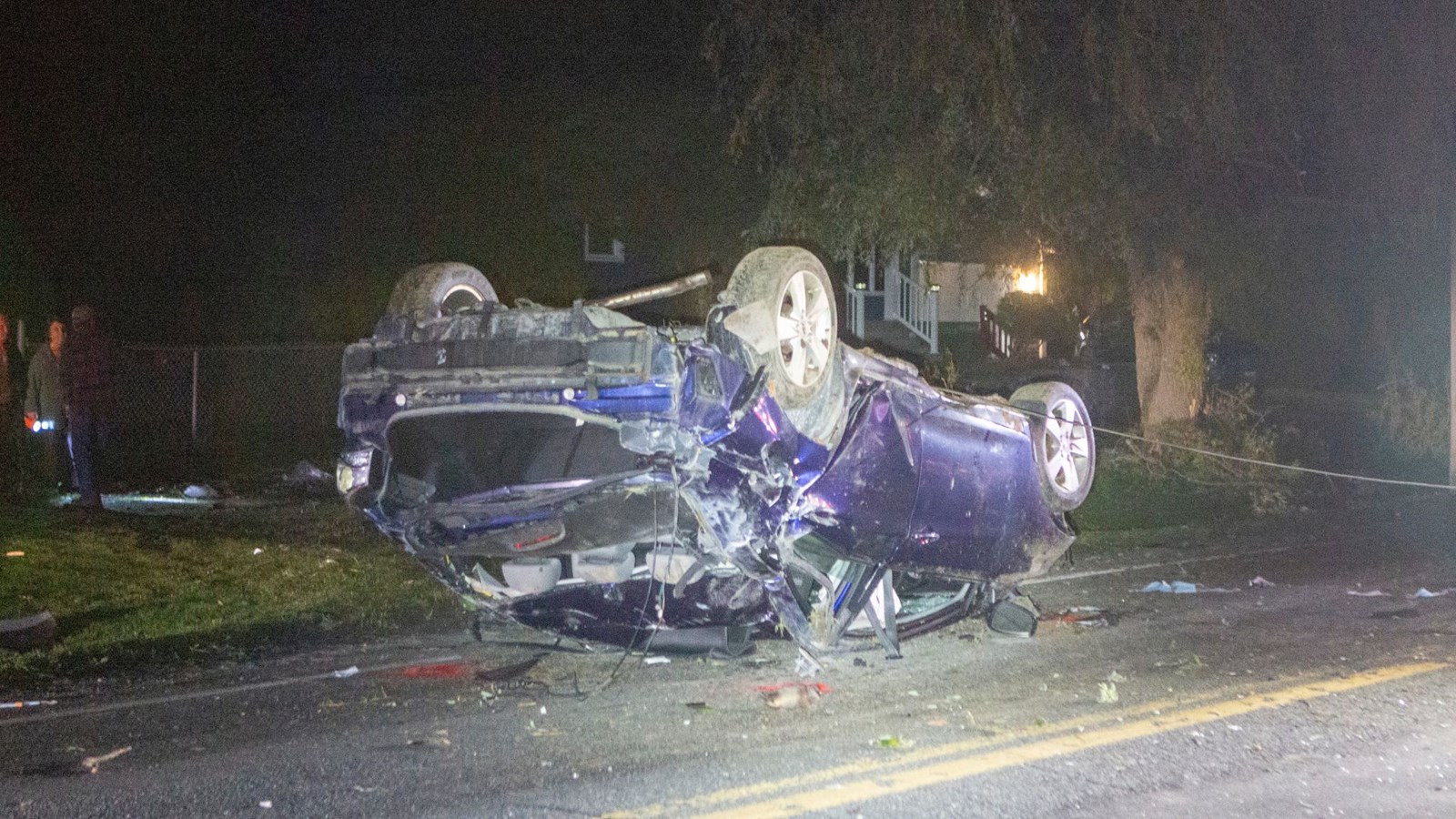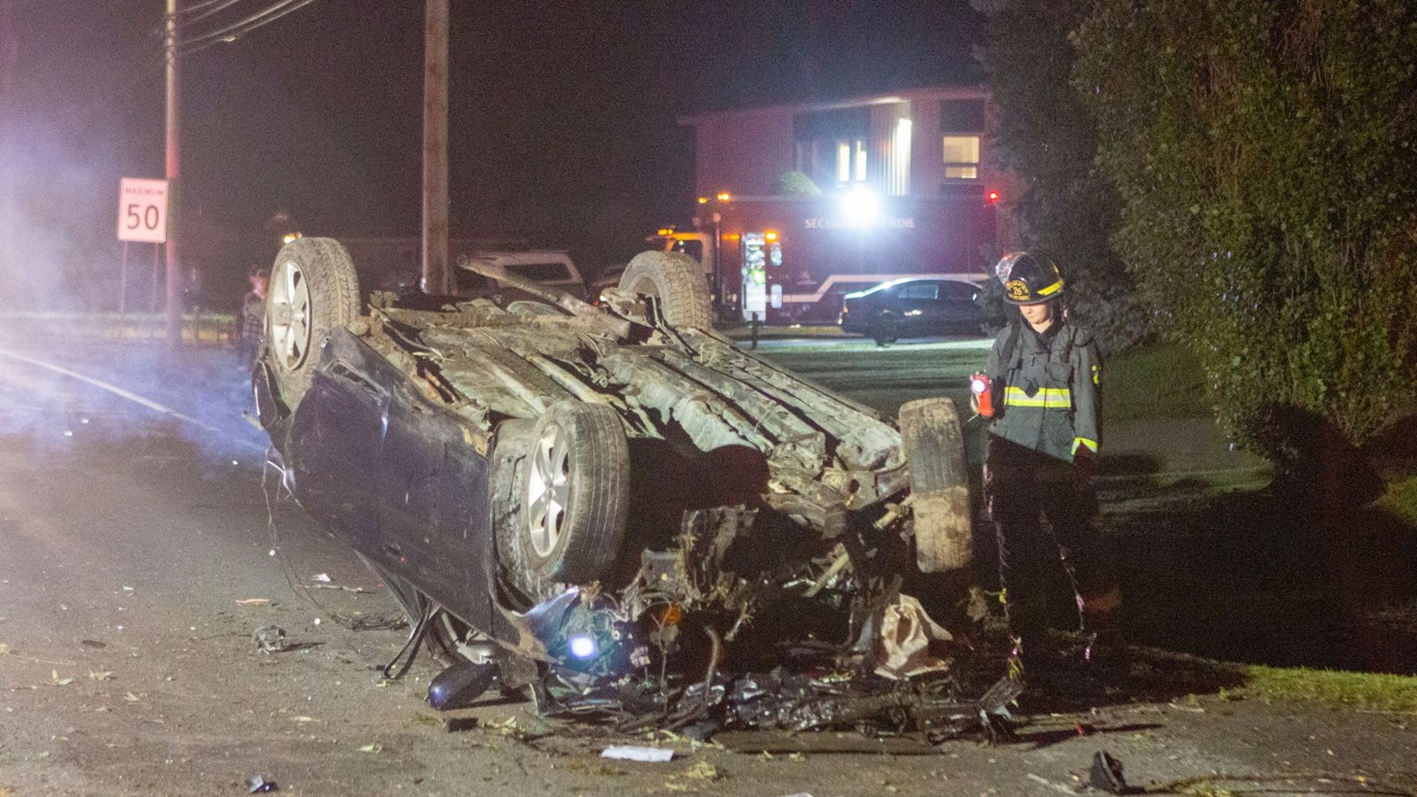 La voiture a effectué plusieurs tonneaux après avoir frappé violemment un poteau électrique.