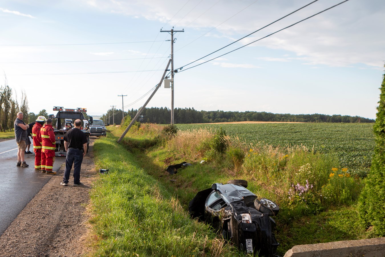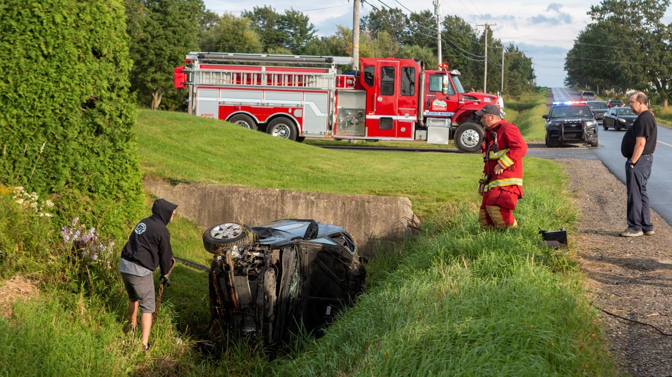 Un véhicule a effectué une sortie de route hier en fin d'après-midi, sur le rang du Bas-Saint-Jacques, près du 179, à Saint-Elzéar.