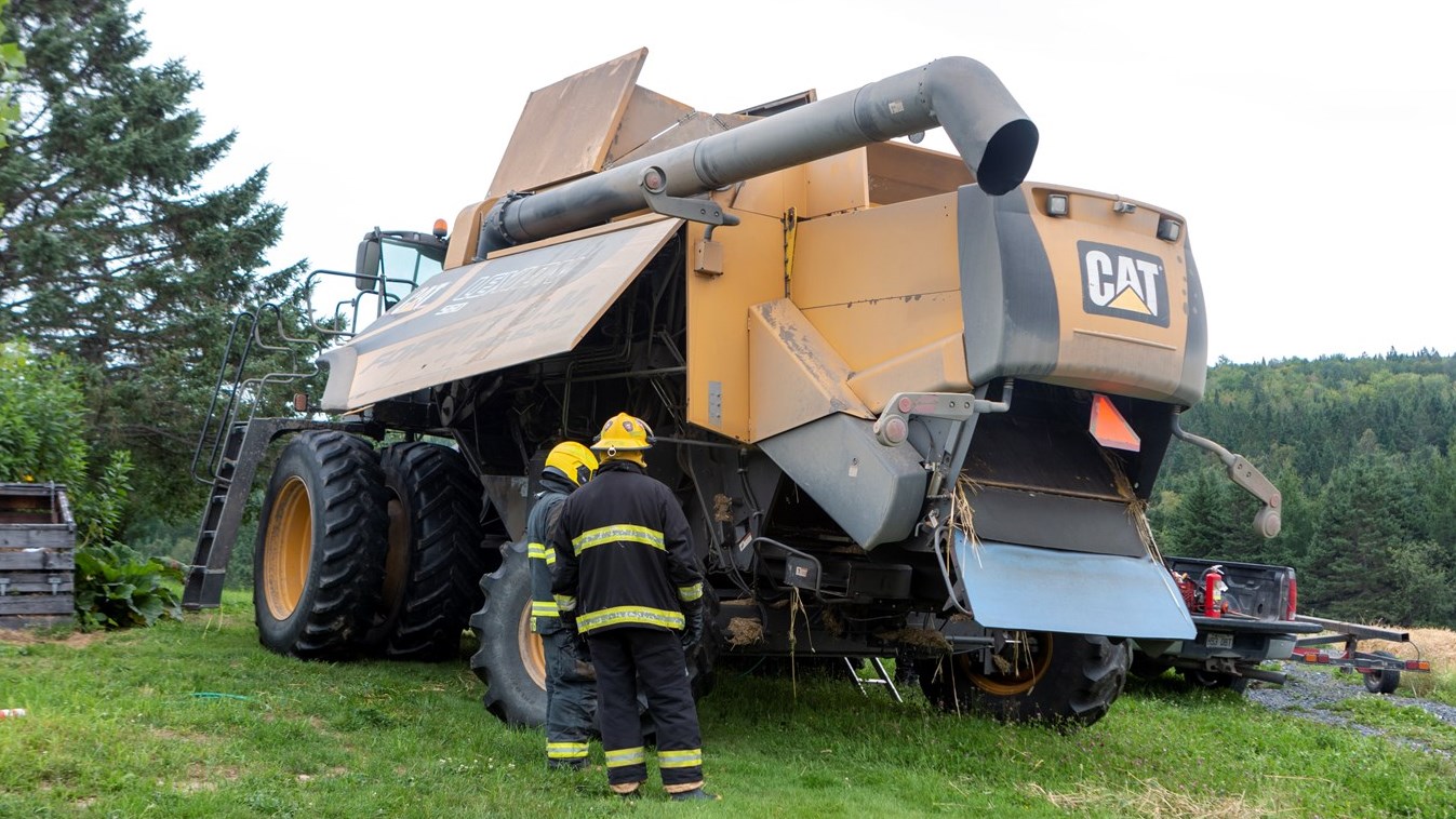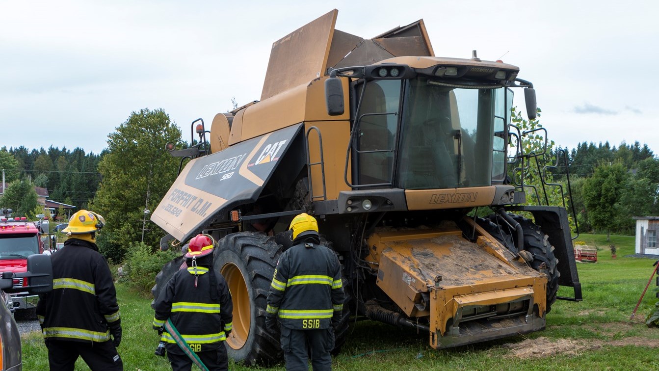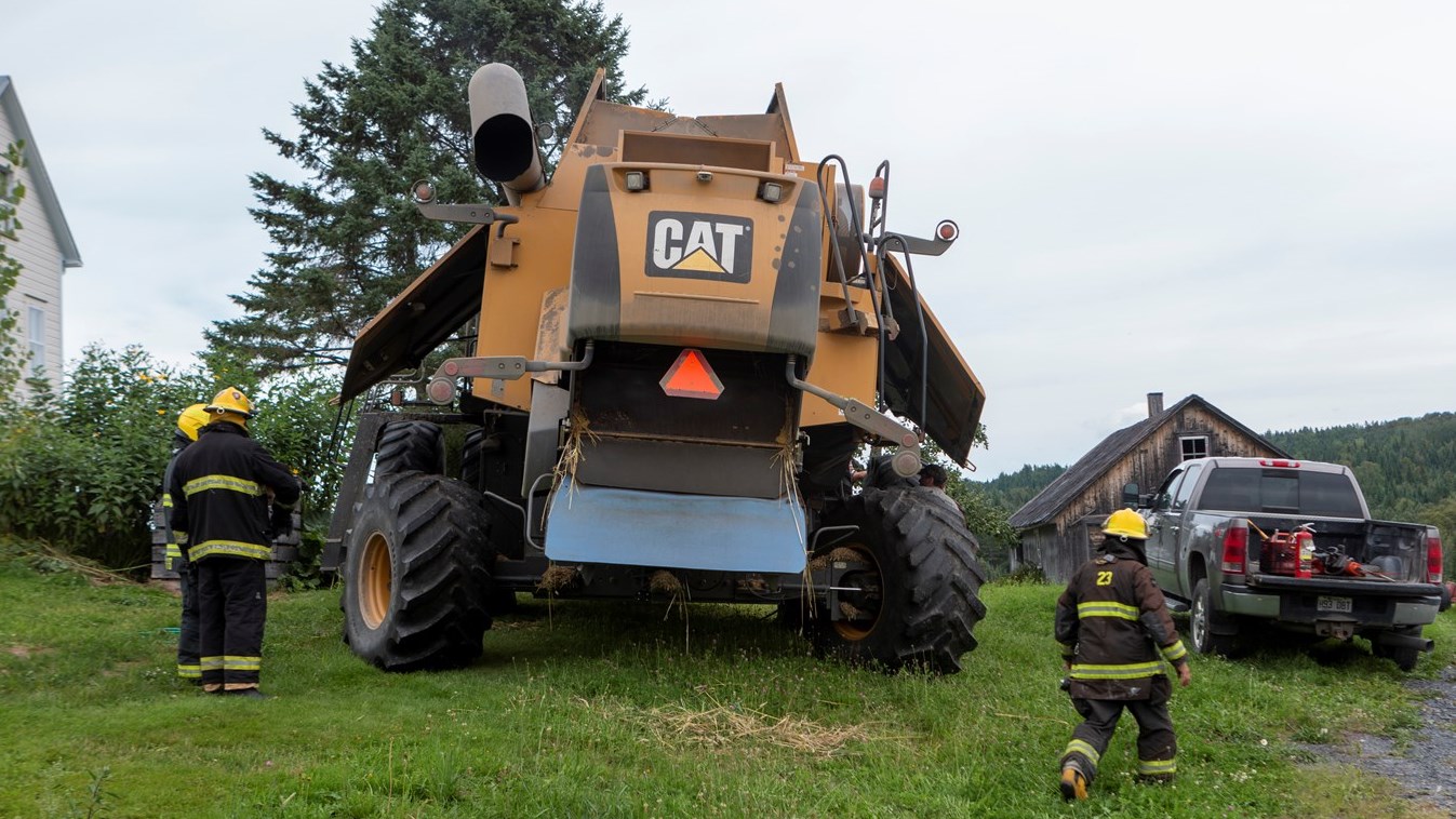 Le Service de sécurité incendie de Beauceville est intervenu près du 3319 sur la rue Principale à Saint-Simon-les-Mines, vers 12 h 15, pour un incendie dans une moissonneuse batteuse.