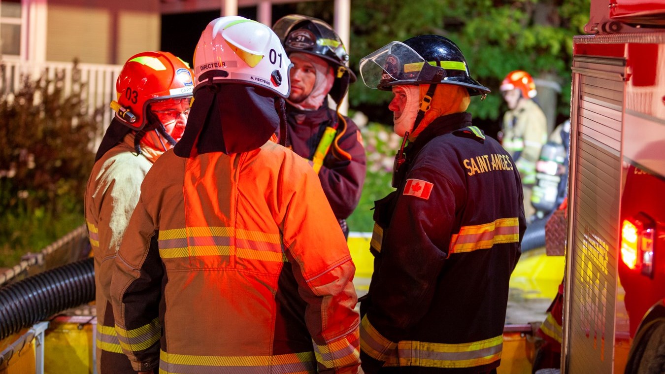 Le Service de sécurité incendie de Saints-Anges et de Sainte-Marguerite ont été demandés en entraide avec des citernes, car il n'y a pas de bornes-fontaines dans le secteur.