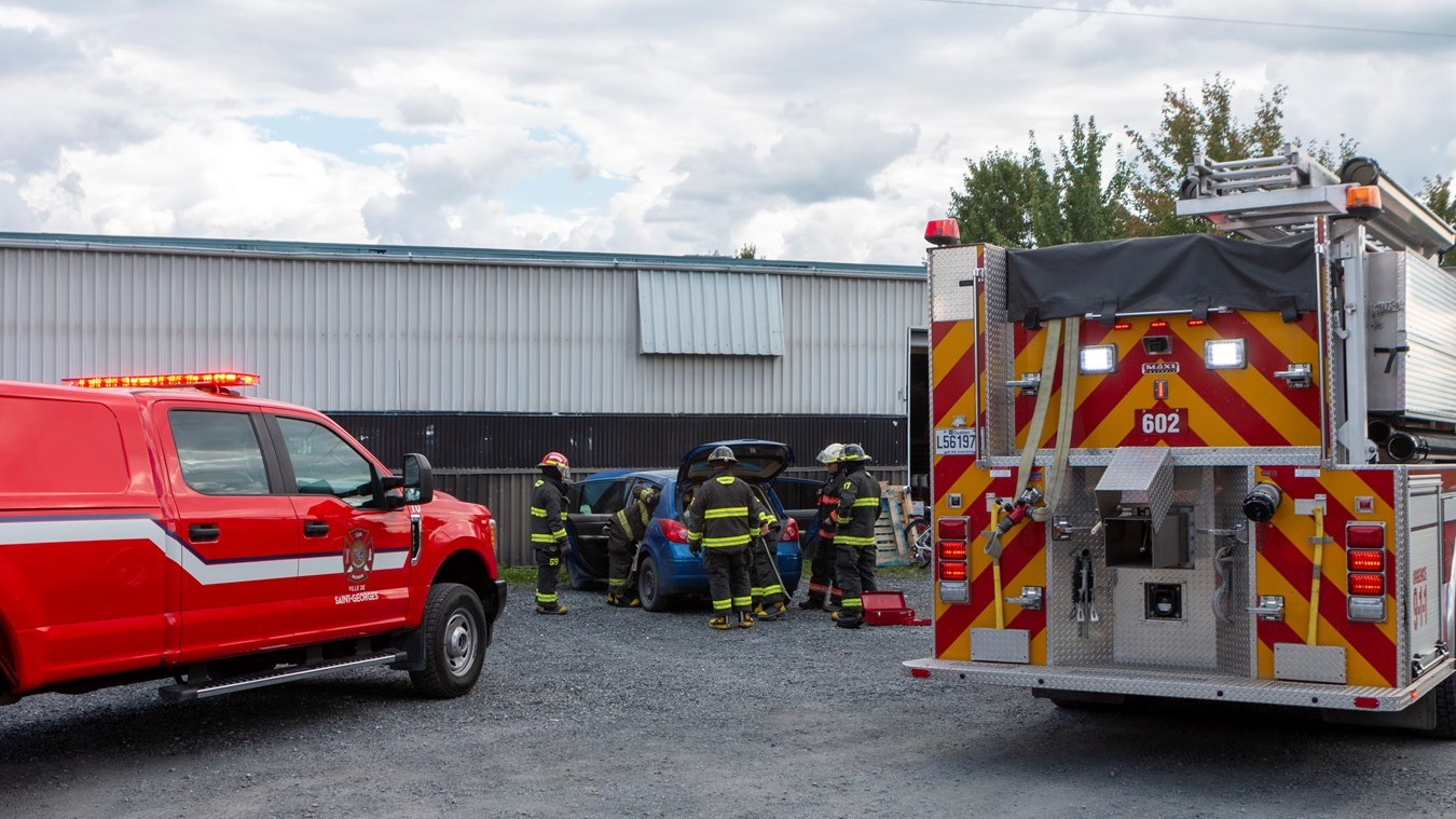 Le Service de sécurité incendie de Saint-Georges est intervenu vers 14 h 50 pour un feu de véhicule à l'arrière de CHAP Aubaines, sur la 22e avenue à Saint-Georges.