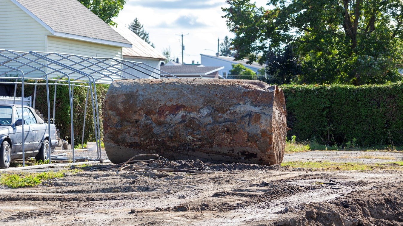 Une compagnie s'affairait à déterrer deux réservoirs d'huile à chauffage enfoui. L'un d'eux avait encore de l'huile à l'intérieur et celle-ci s'est déversée sur la chaussée lors du transport par camion.