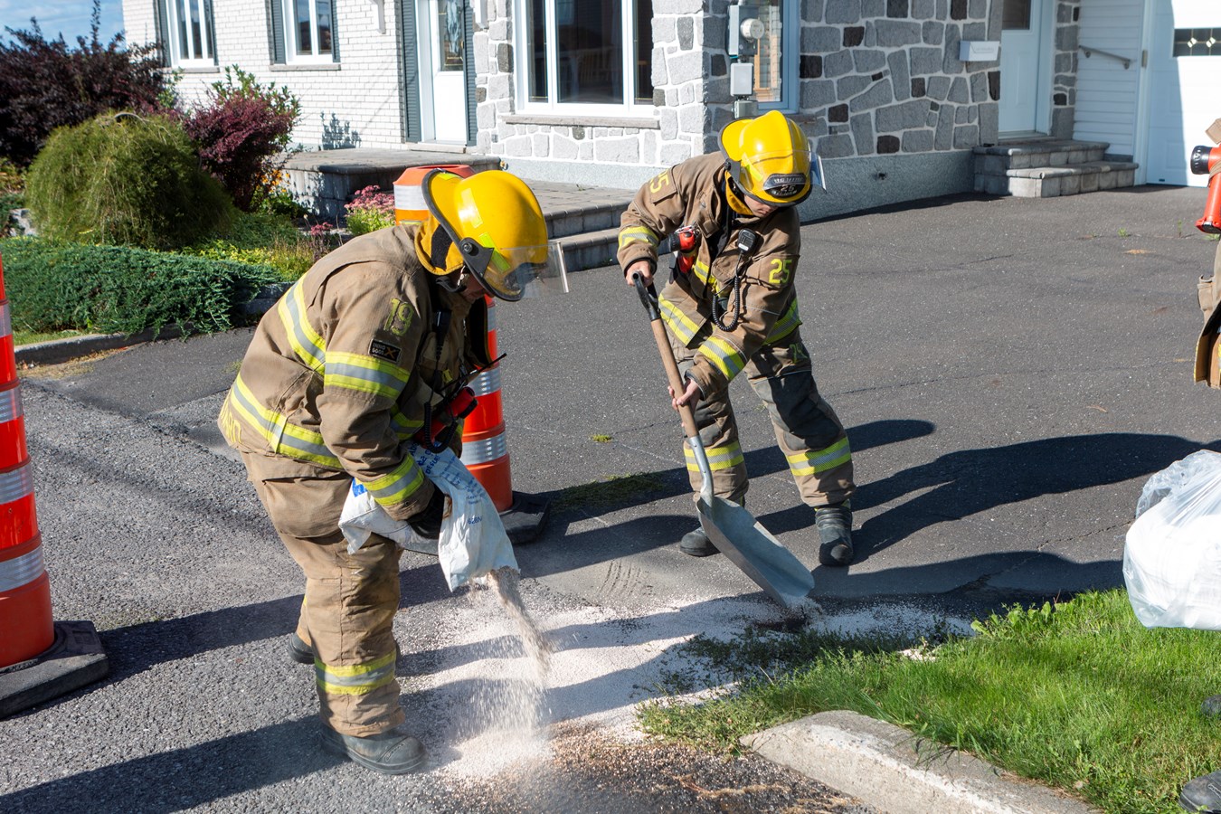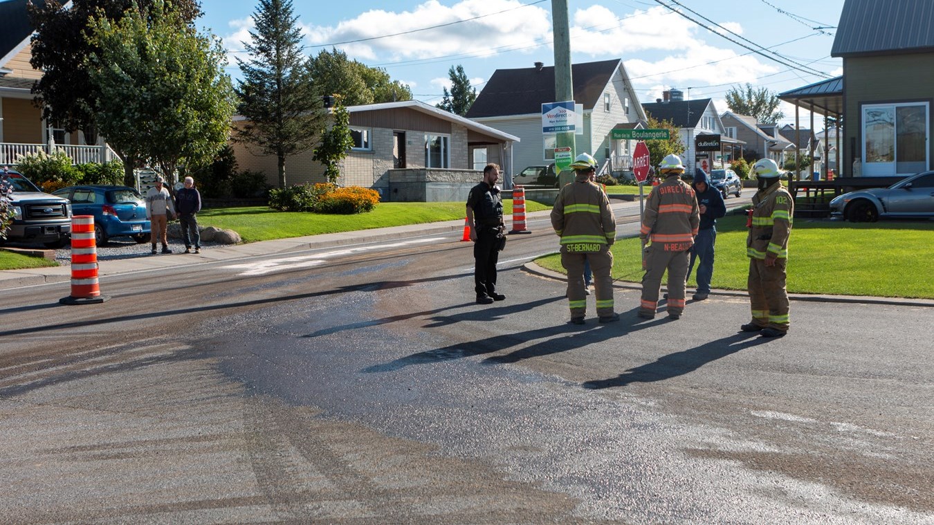 Les deux rues ont donc été fermées le temps de nettoyer. Cependant, l'huile n'a pas contaminé le réseau des égouts de la municipalité, selon Antoine Sévigny, directeur du SSI de Saint-Bernard.