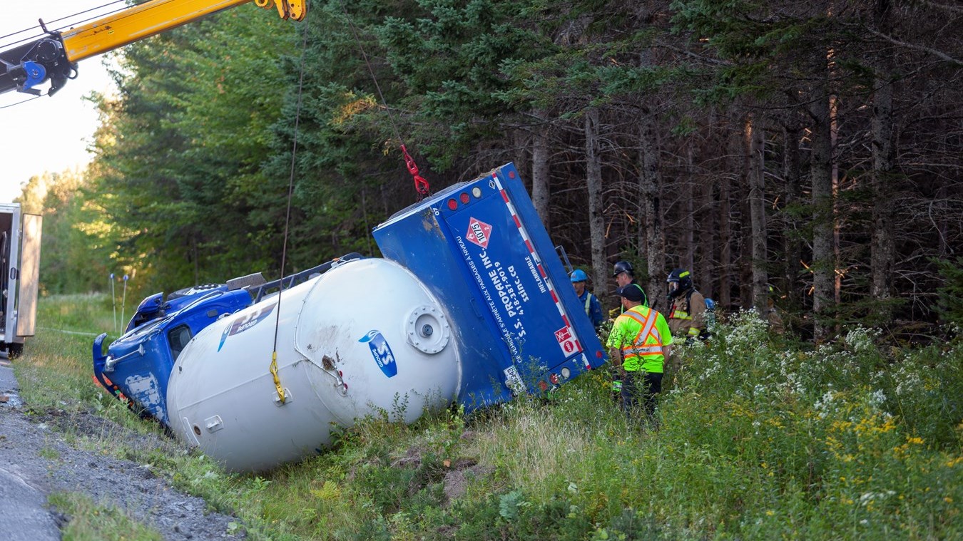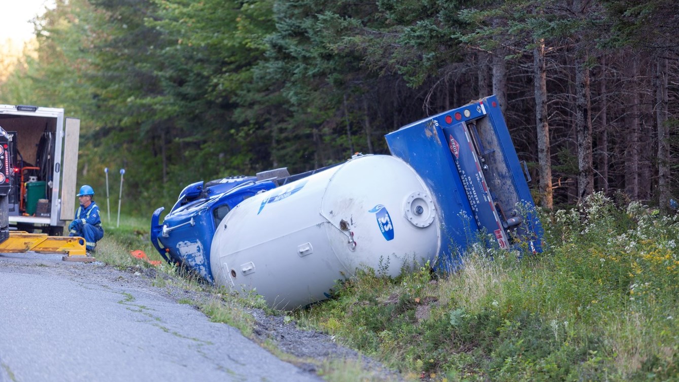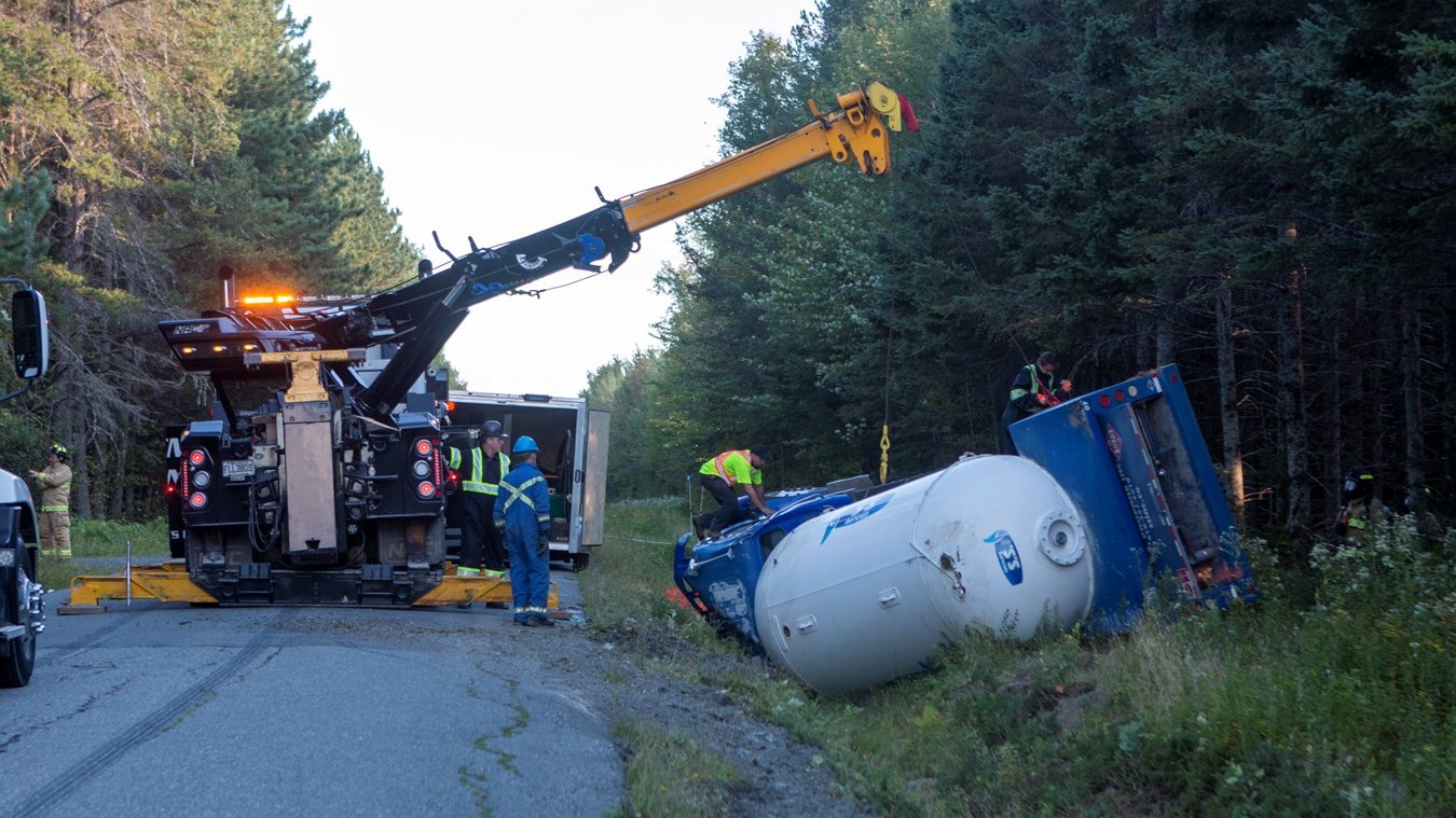 Le véhicule circulait sur le 3e rang de Jersey Sud à Saint-Martin et a effectué une sortie de route avant de se renverser sur le côté. L'accident a causé une légère fuite au niveau du réservoir donc les pompiers ont dû intervenir pour la gestion de matières dangereuses. Le propane a été transféré dans une autre citerne avant le remorquage du véhicule. Le propane ne s'est pas propagé dans le réseau de la municipalité.