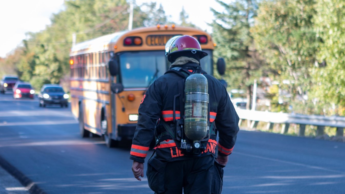 La Sûreté du Québec et les paramédics du groupe CAMBI étaient sur place également. La route a été fermée le temps de l'intervention.