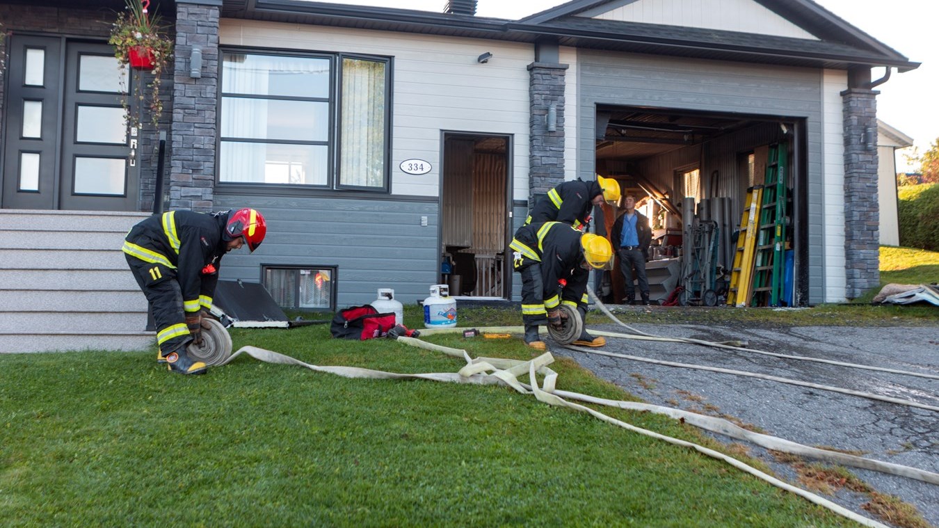 À l'arrivée des pompiers, de la fumée noire s'échappait du bâtiment. Ils ont rapidement maitrisé les flammes, avec l'entraide du SSI de Saint-Éphrem. Grâce à cela, le feu ne s'est pas propagé à la résidence ni à l'entretoit. Une vingtaine de soldats du feu étaient sur place.