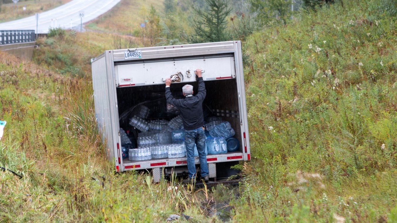 La circulation a été ralentie le temps de l’opération. À noter que le camion transportait des cruches d'eau.
