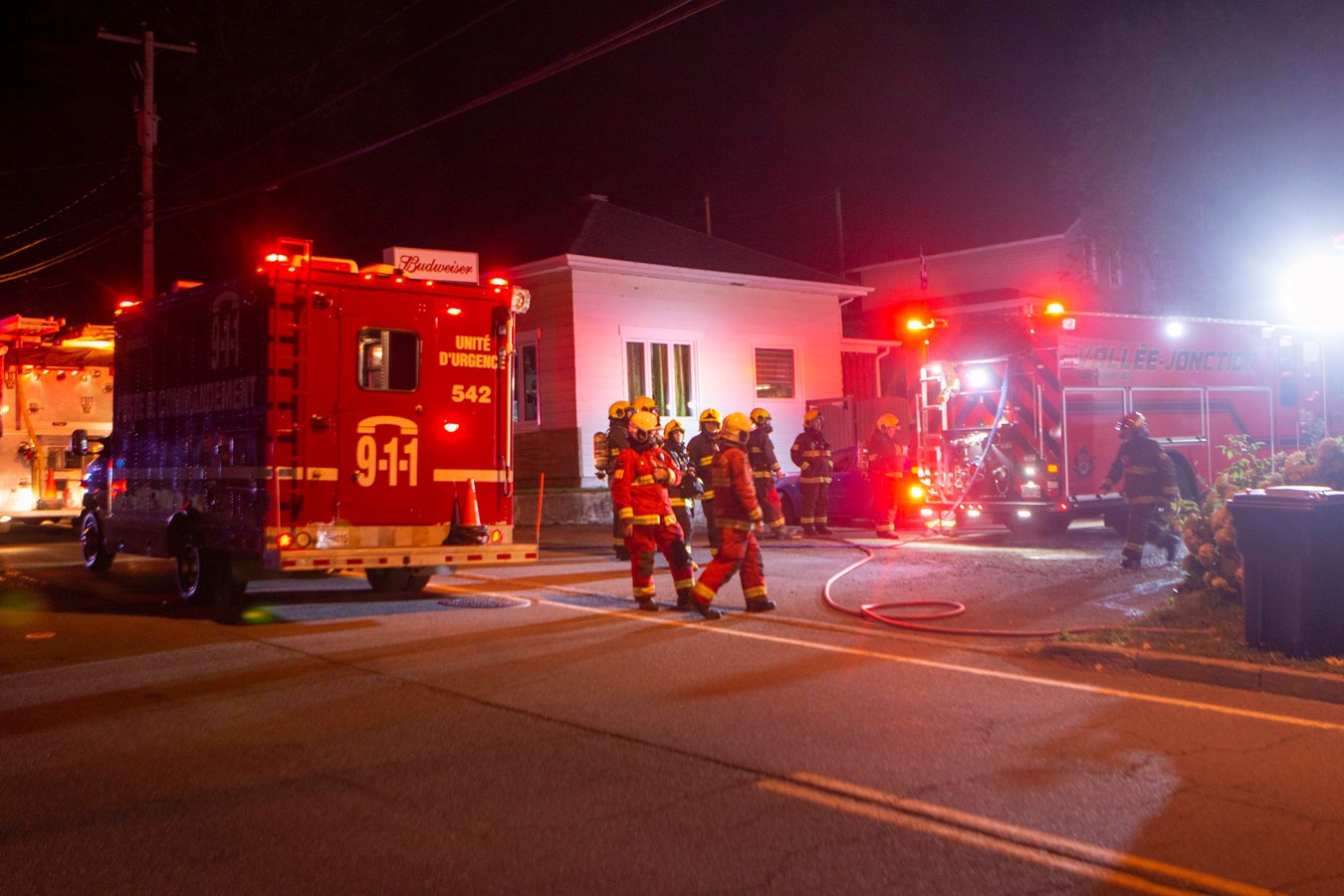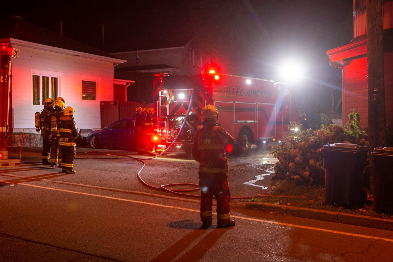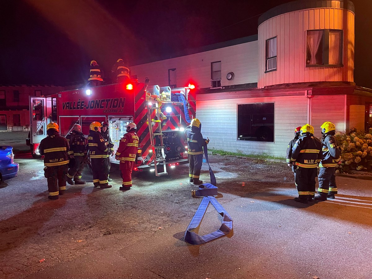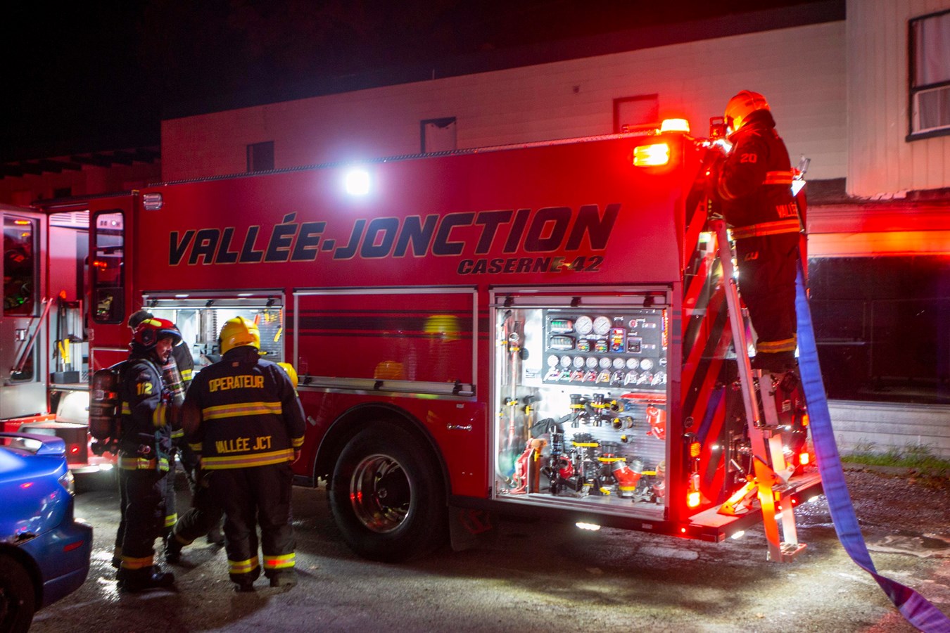 Le tout nouveau camion des pompiers de Vallée-Jonction a fait sa première intervention hier soir, vers 20 h 30, au Bar Astoria sur la rue Principale.