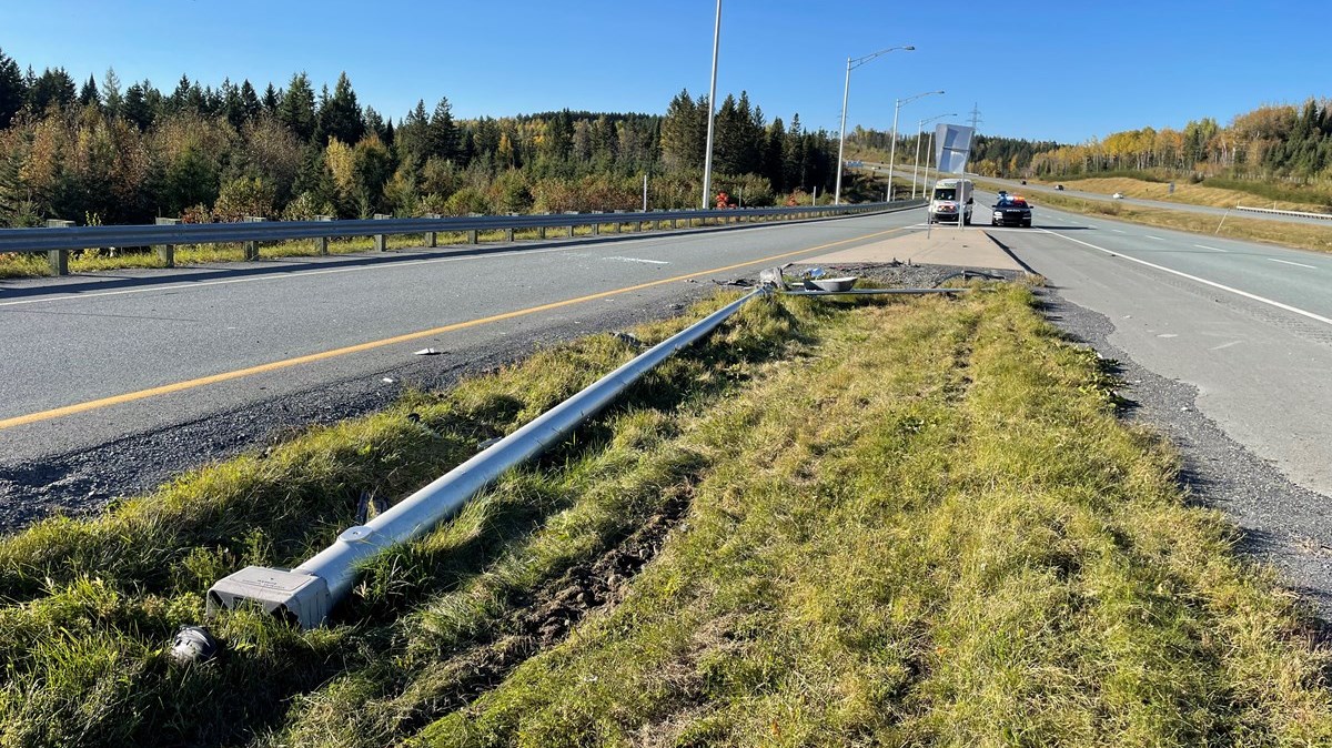 Le conducteur d'une voiture a frappé un lampadaire de plein fouet au kilomètre 54 de l'autoroute 73 Sud dans le secteur de Notre-Dame-des-Pins, près de la sortie à cet endroit.