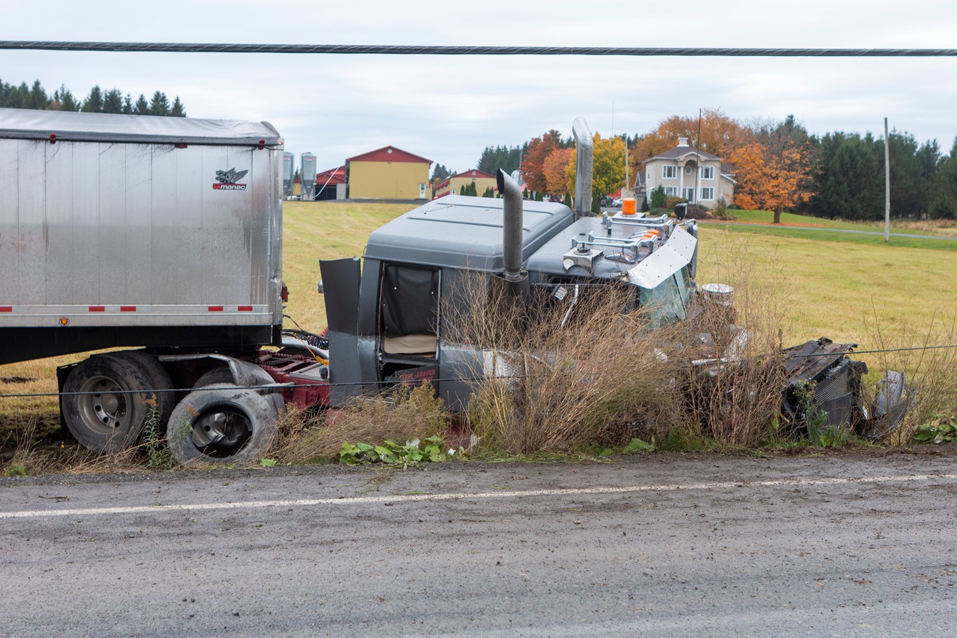 Un tracteur et un camion semi-remorque impliqué dans un accident