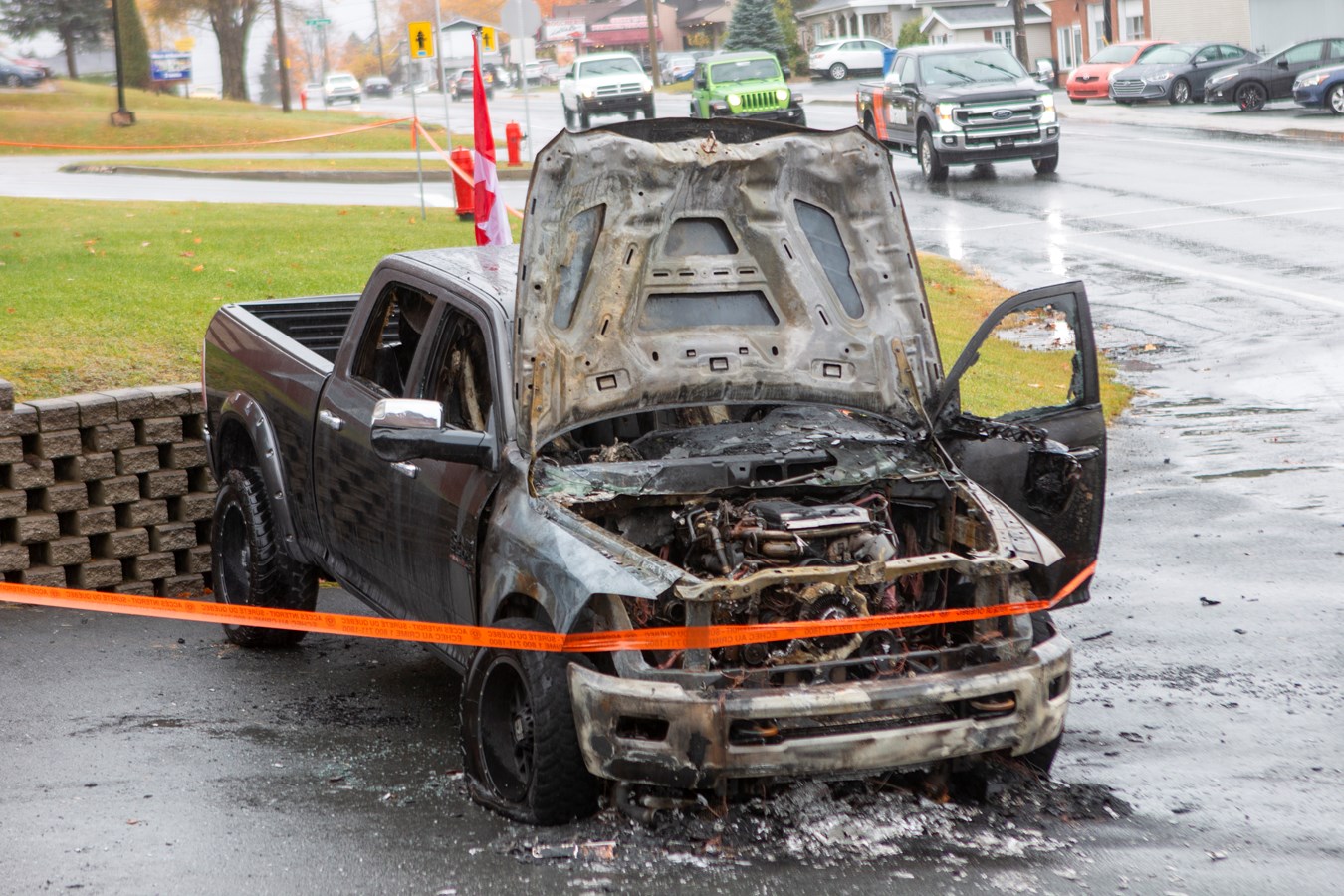 À l’arrivée des pompiers, à l’intersection de la 127e Rue et de la 22e Avenue, la camionnette était complètement embrasée. On ne compte que des dommages matériels et le véhicule est perte totale.