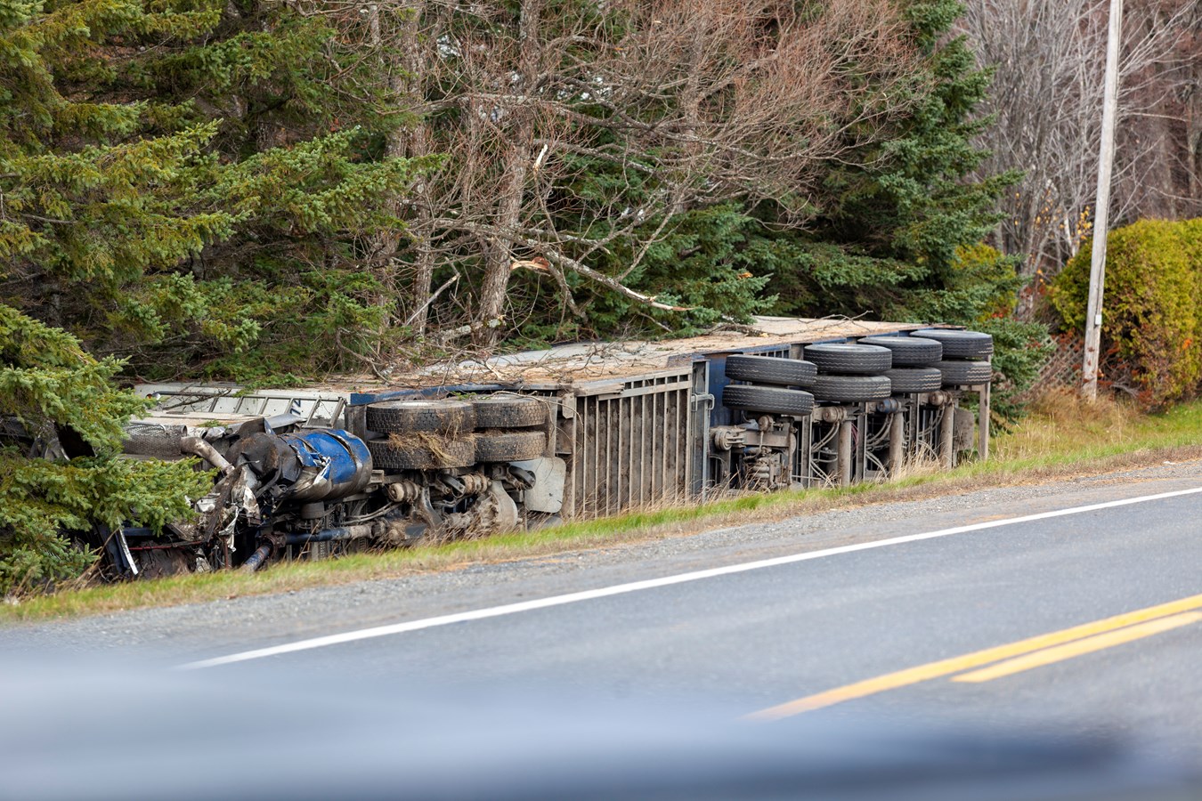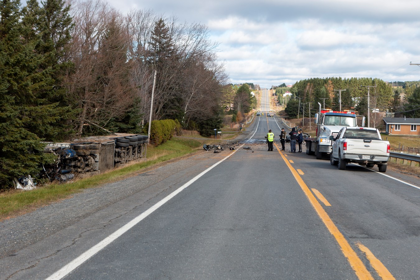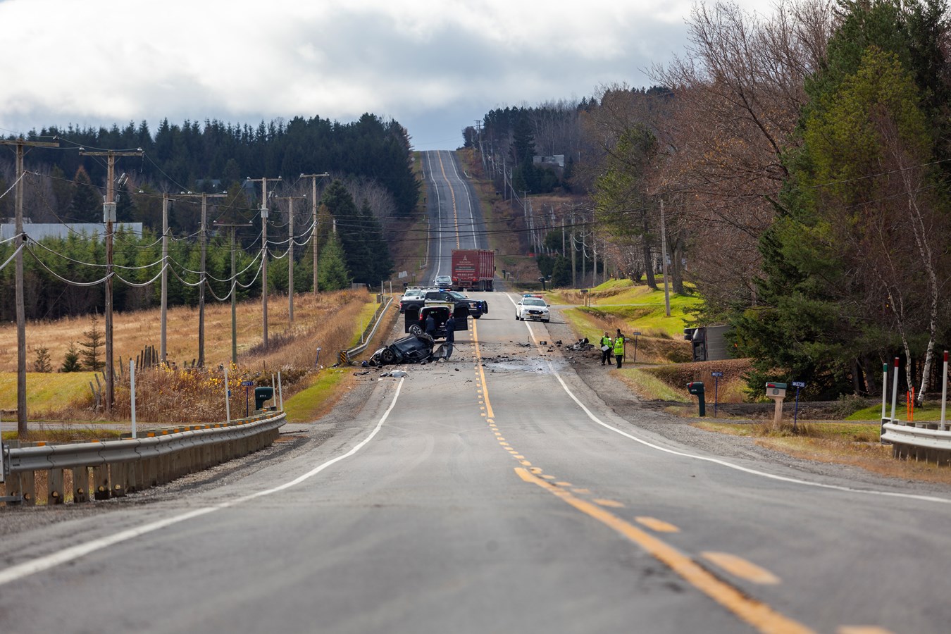 Selon les informations transmises par les autorités, la voiture, qui circulait en direction est, aurait tenté de tourner dans une entrée de cour et aurait coupé le chemin du poids lourd qui circulait en direction ouest.