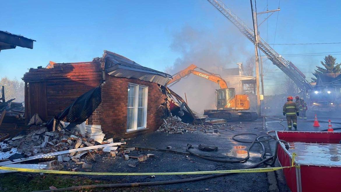 Un garage résidentiel a pris feu cette nuit, sur la rue Principale à Saint-Léon-de-Standon, et l'incendie s'est propagé à la Résidence funéraire Roland Couture & Fils. Les deux bâtiments ont été complètement détruits.