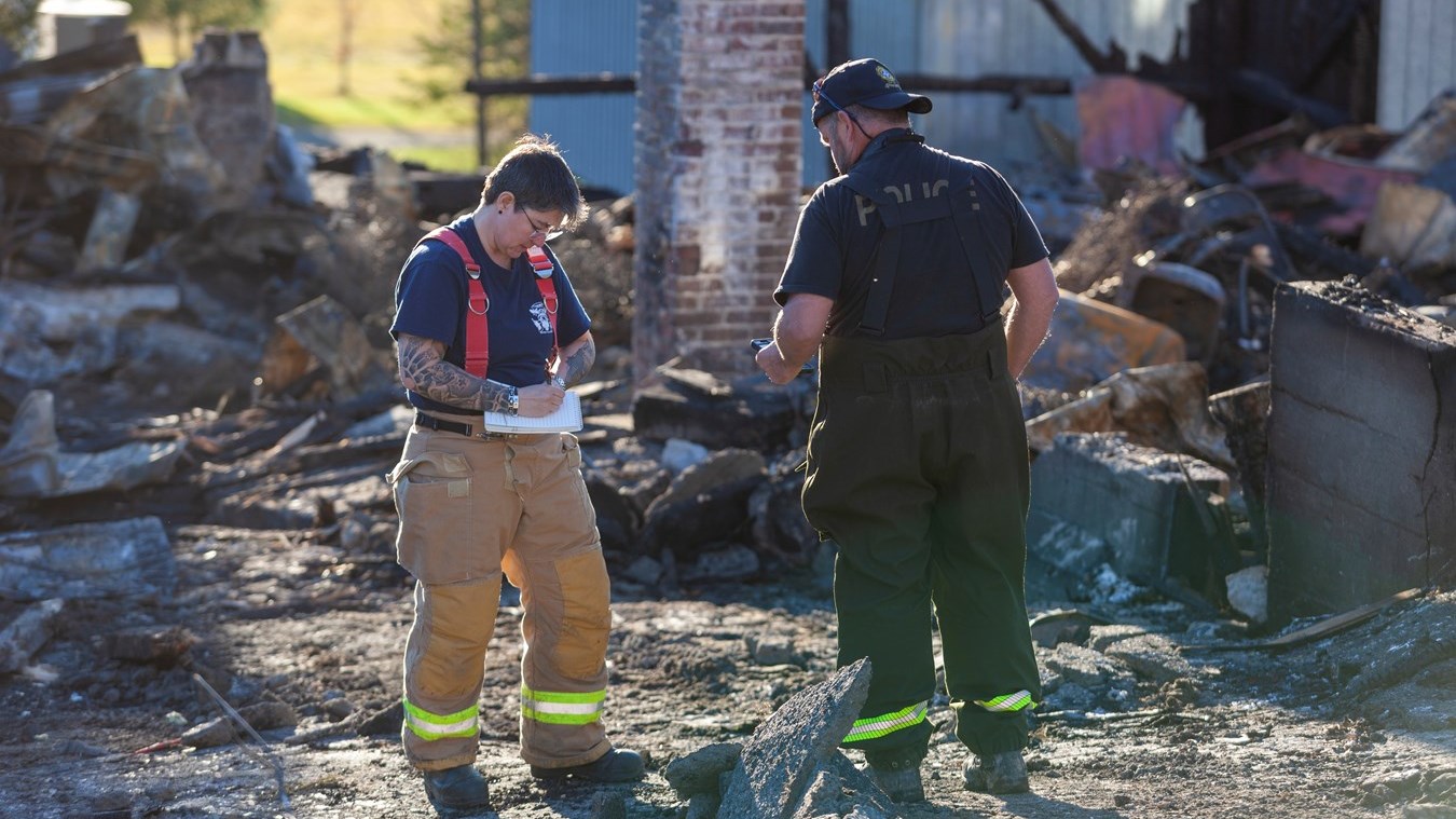 Des enquêteurs spécialistes en incendie de la Sûreté du Québec ont été dépêchés sur les lieux pour déterminer l'origine du feu qui a rasé la Résidence funéraire Roland Couture & Fils, ainsi qu'un garage résidentiel, hier, à Saint-Léon-de-Standon.
