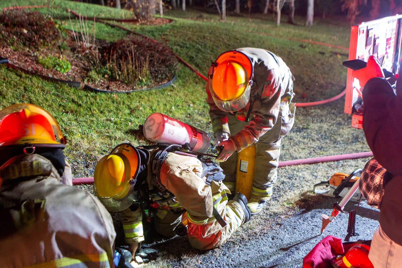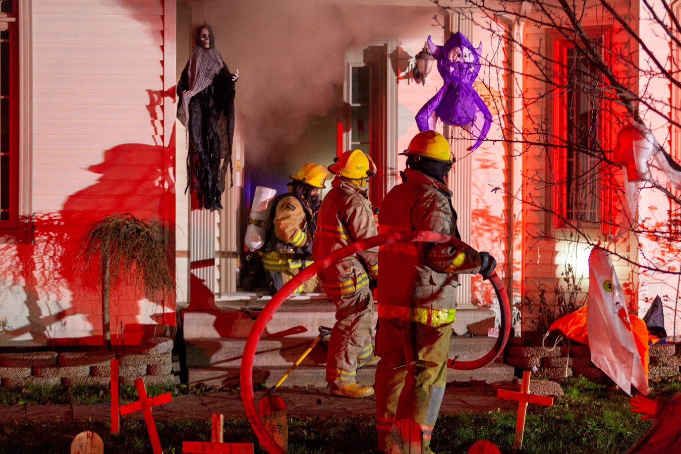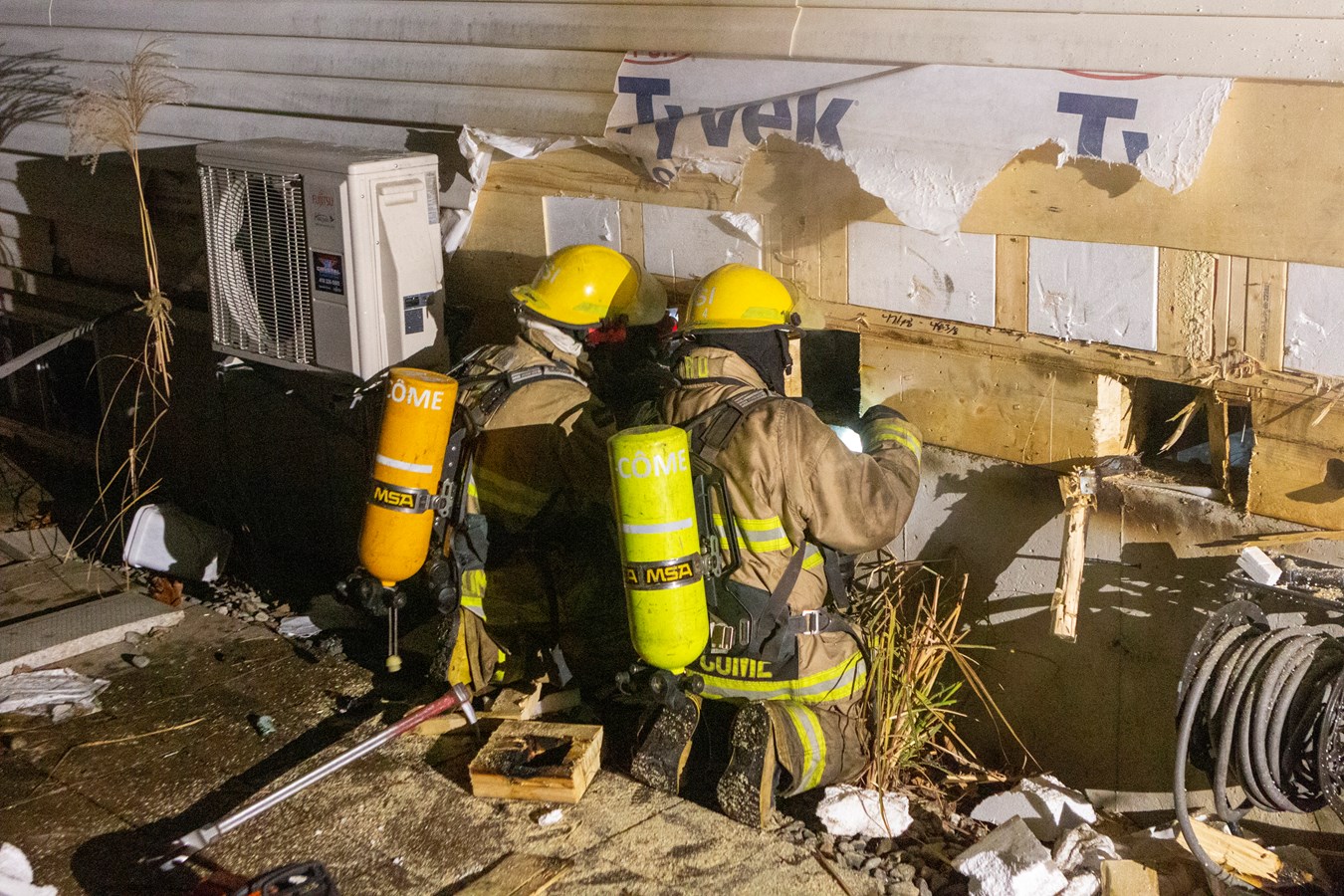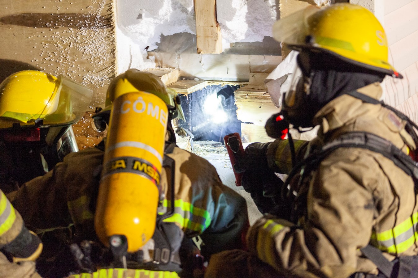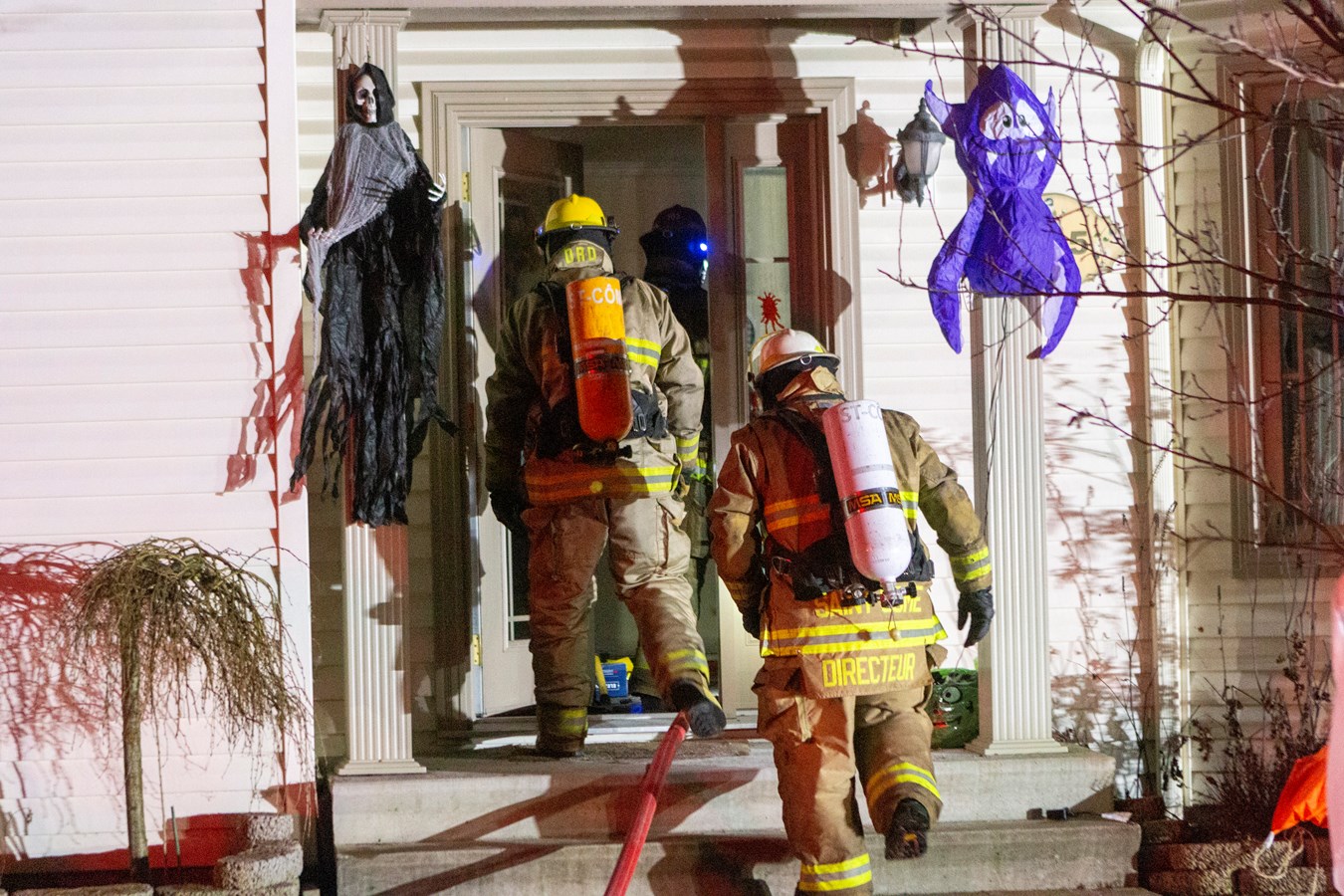 À leur arrivée, des flammes étaient visibles à l’arrière de la résidence et provenaient des tuyaux de ventilation. La rue a été immédiatement fermée à toute circulation le temps des opérations.
