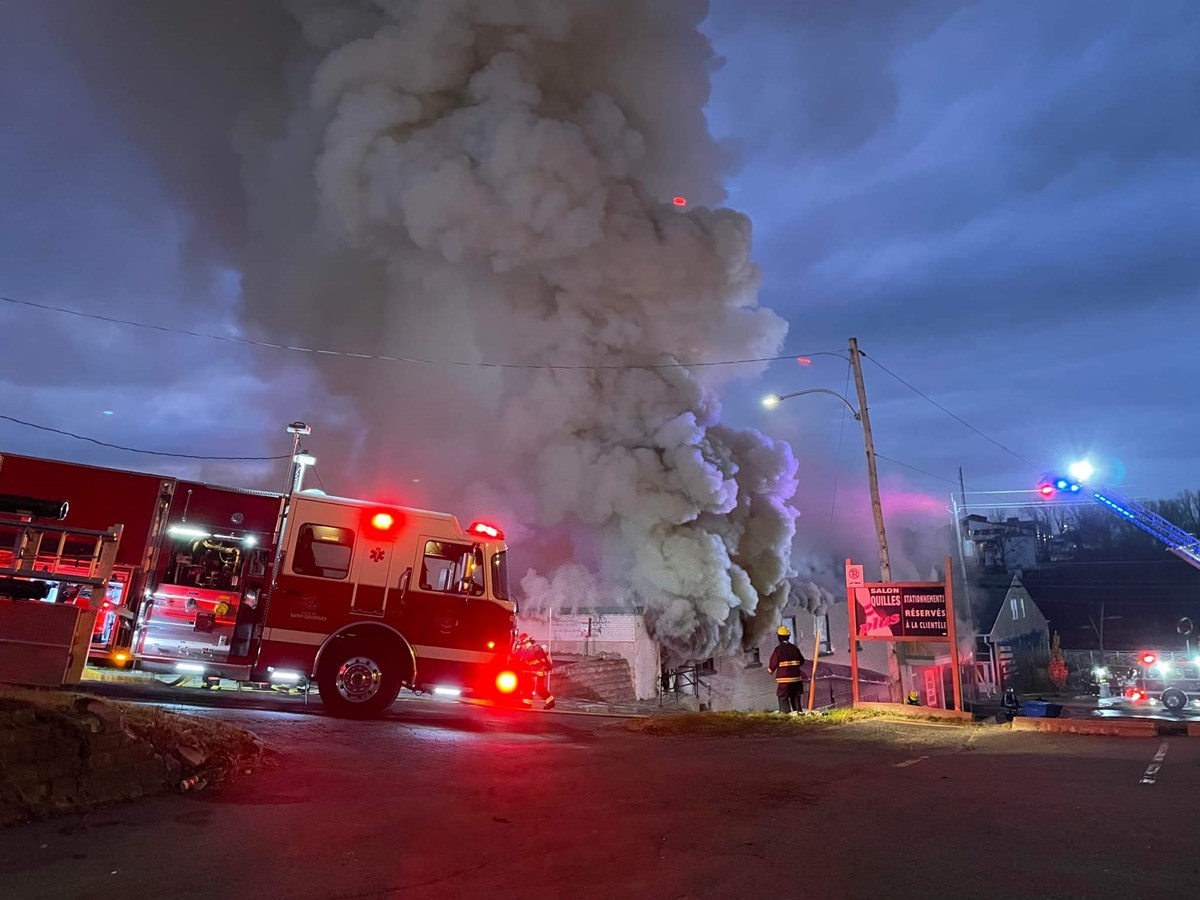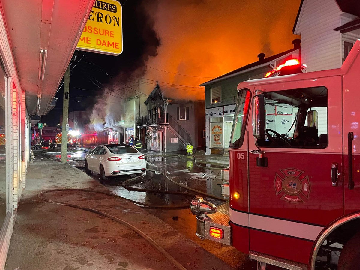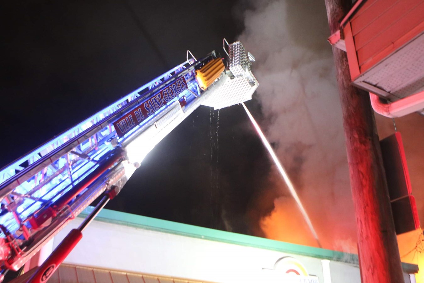 Les pompiers de Saint-Georges sont sur place, avec l'entraide du service de garde de Beauceville. Ils travaillent avec un « jet déluge » pour stopper le feu.