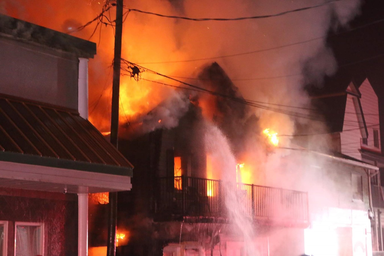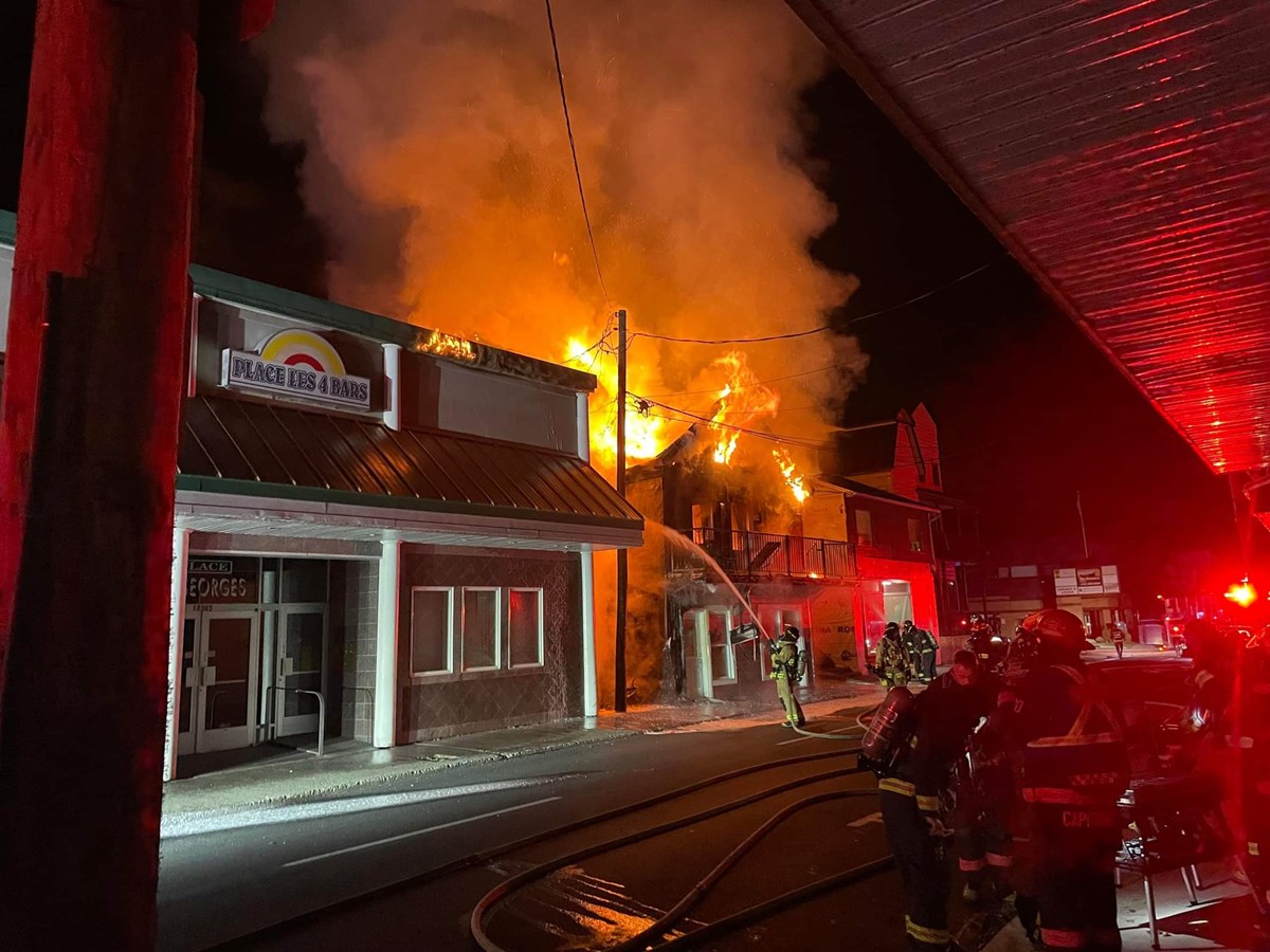 Un feu jette à la rue les locataires d'un immeuble à logements sur la 1re avenue à Saint-Georges, au coin de la 123e rue, vers 5h ce samedi matin.