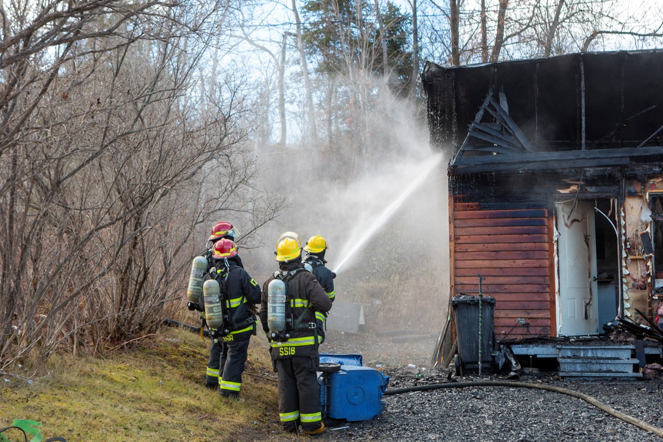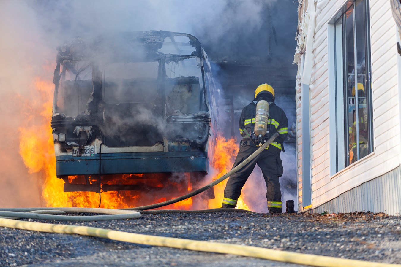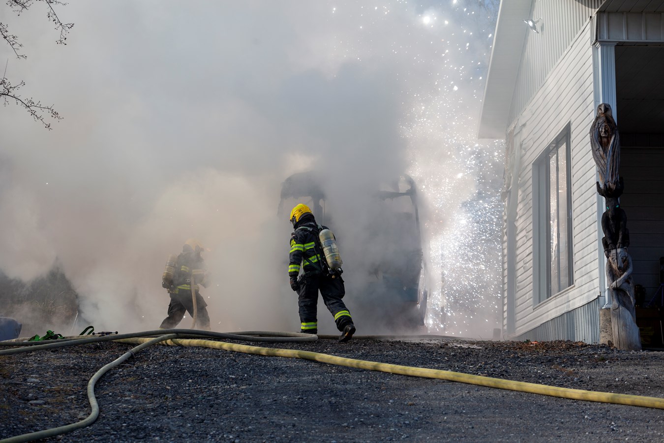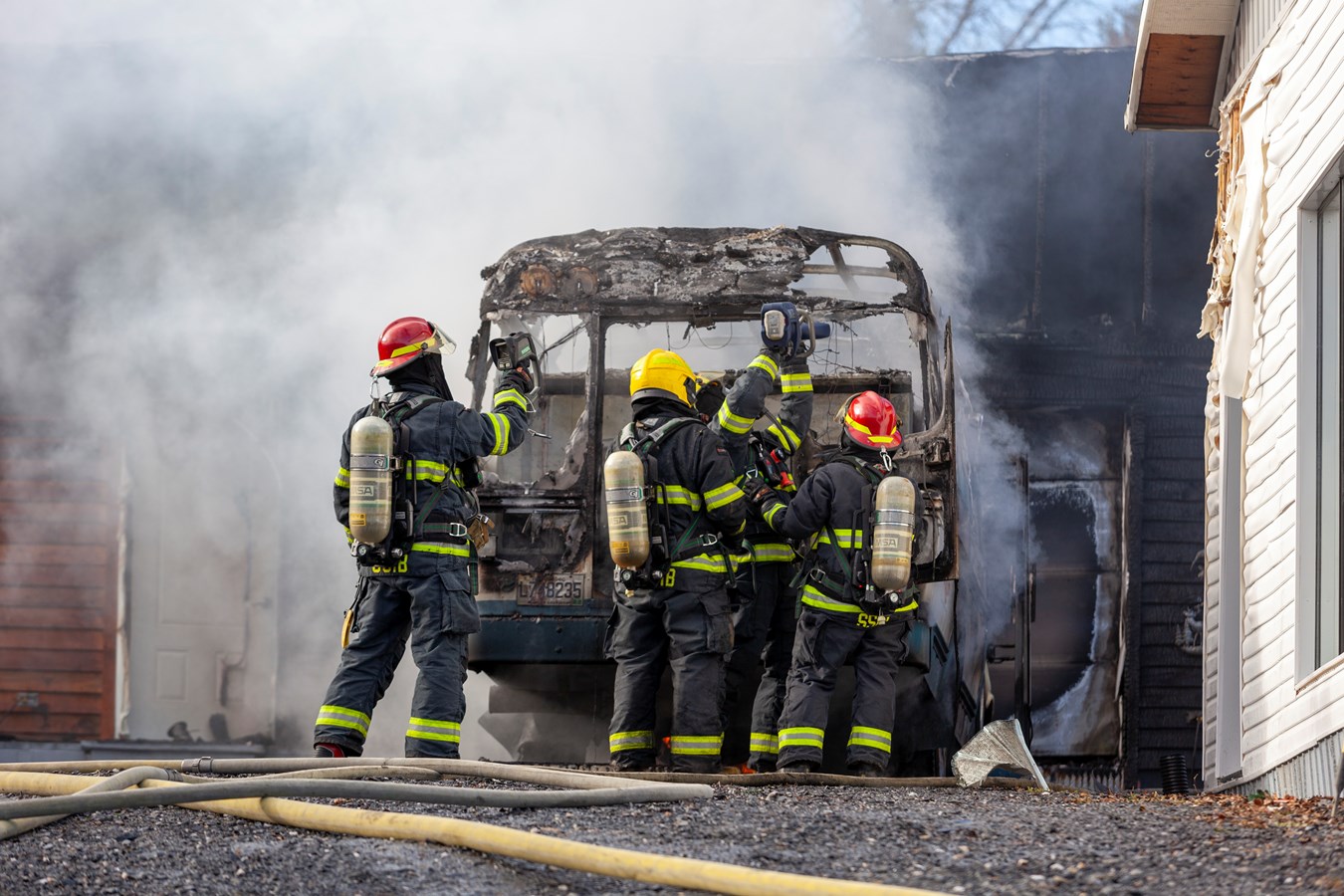 On ne connaît pas le montant des dommages encourus mais le véhicule et le bâtiment sont des pertes totales.