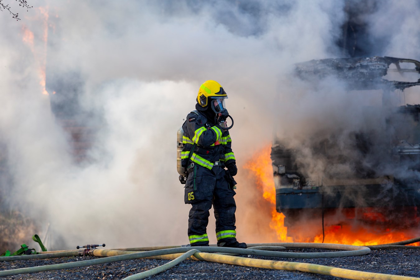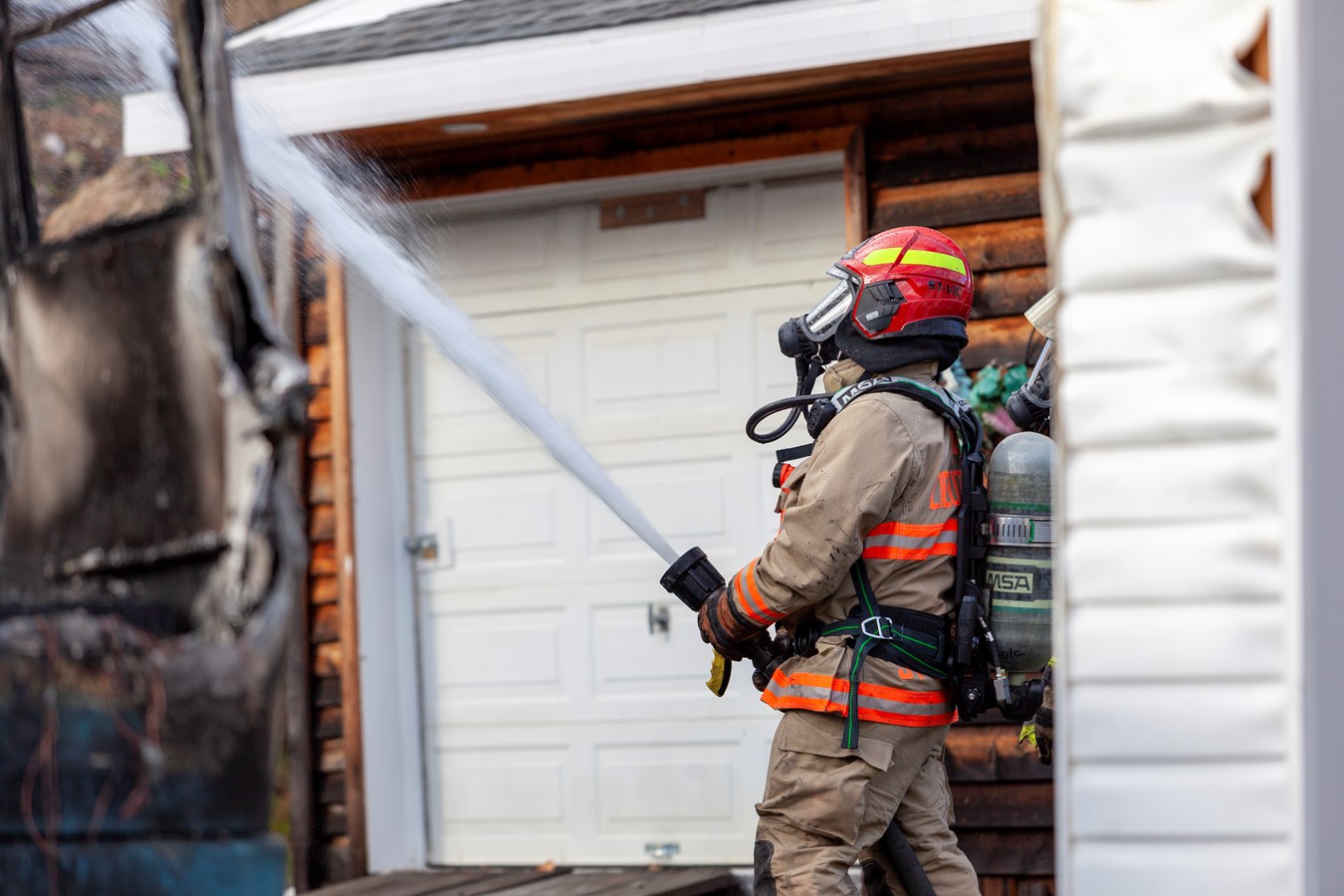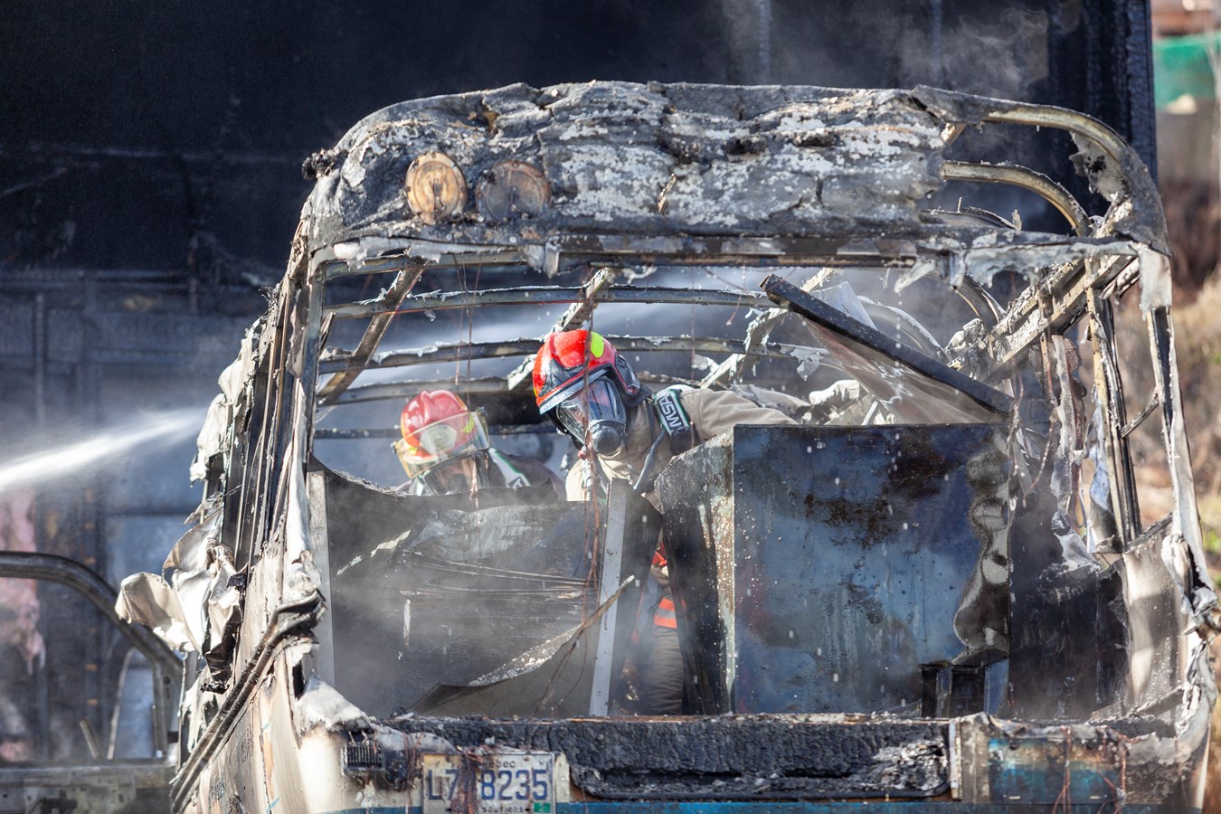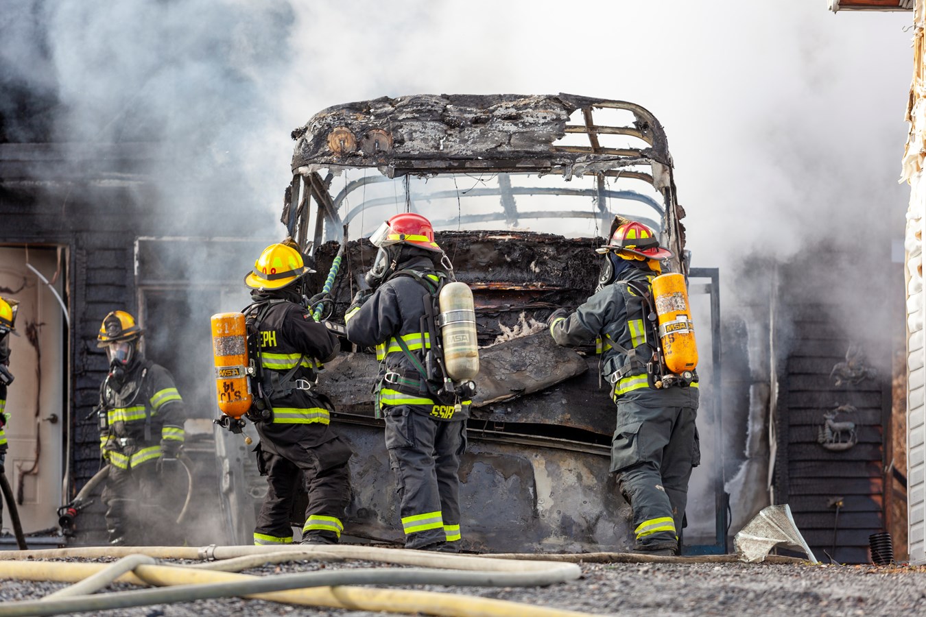 On ne connaît pas le montant des dommages encourus mais le véhicule et le bâtiment sont des pertes totales.
