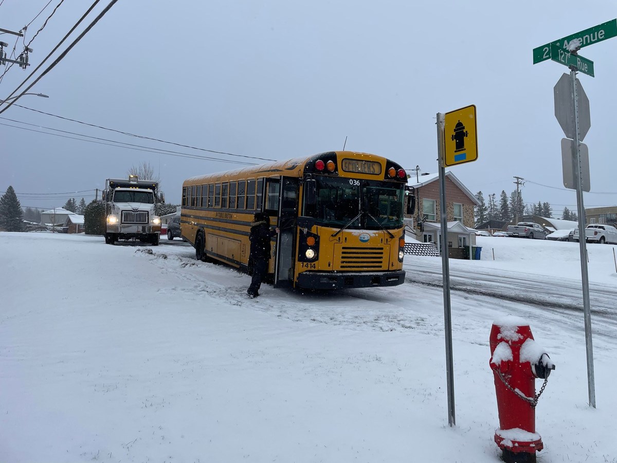 Enfin, un autobus scolaire a fait une sortie de route au niveau de la 127e rue à Saint-Georges, à l'intersection avec la 22e avenue. L'accident n'a pas fait de blessé. Avec l'aide d'un véhicule de la ville, l'autobus a pu reprendre la route.