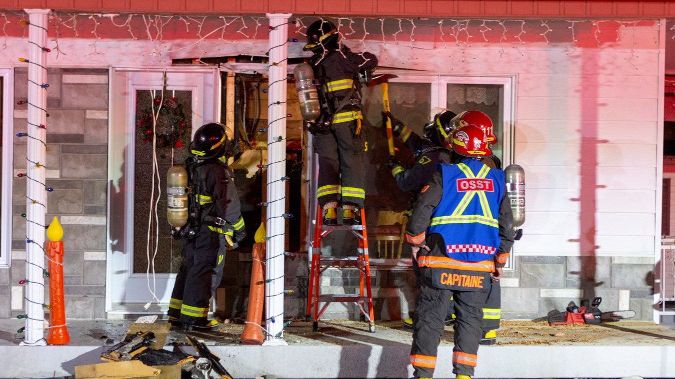 Selon le chef de division du Service de sécurité incendie de Saint-Georges, Frédéric Morin, lorsque les pompiers sont arrivés sur les lieux, de la fumée sortait près du luminaire extérieur de la porte-avant de la façade de la maison.
