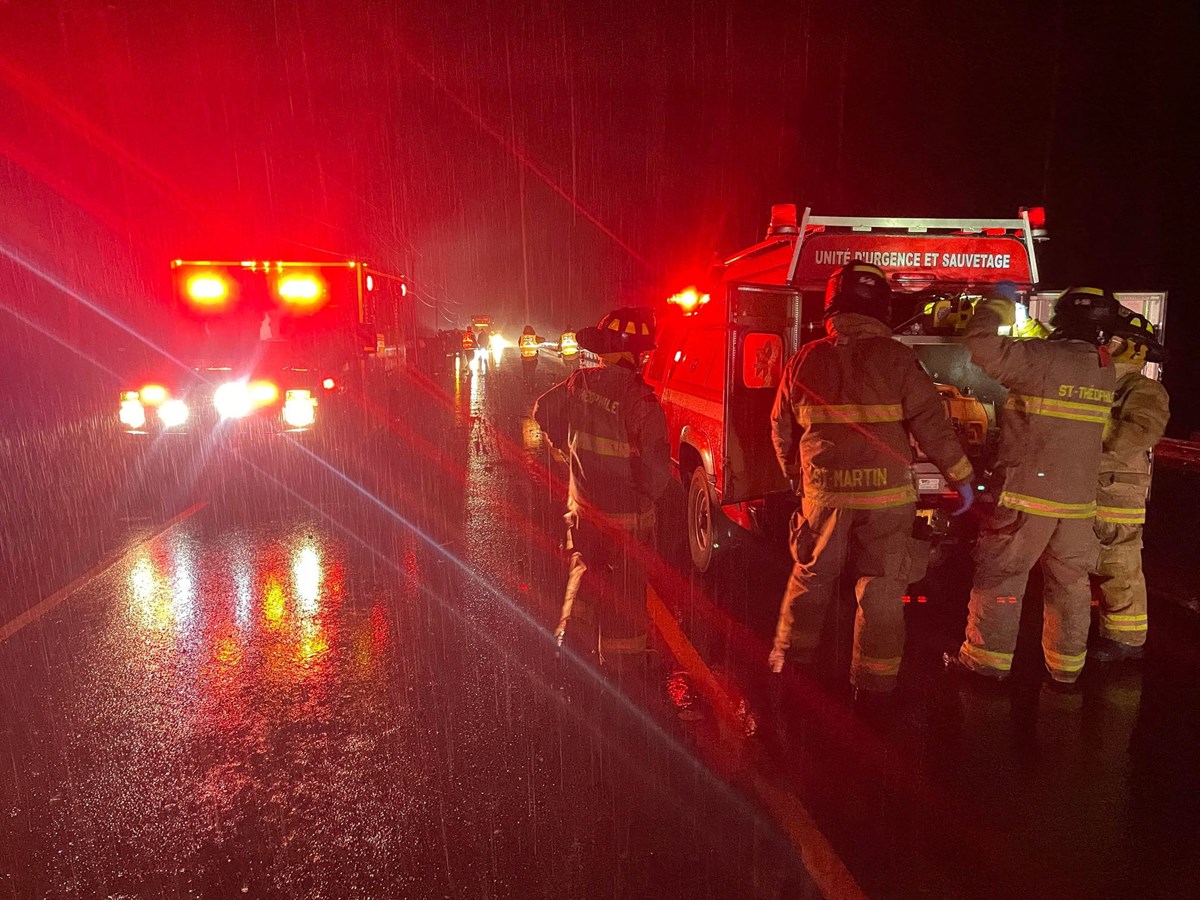 Le Service de sécurité incendie de Saint-Martin/Saint-Théophile a été appelé avec les pinces de désincarcération pour sortir l'une des personnes impliquées coincée dans son véhicule.
