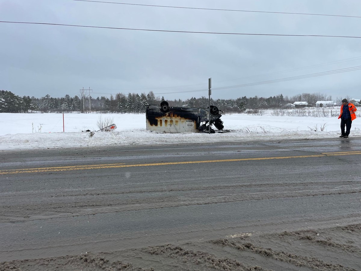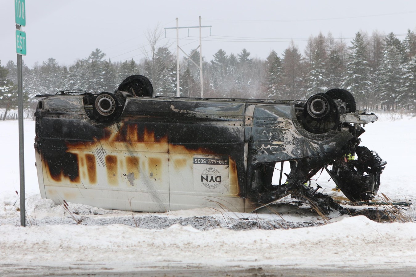 La fourgonnette a fait un tonneau, a percuté une borne incendie puis pris feu. De ce fait, le véhicule est perte totale.