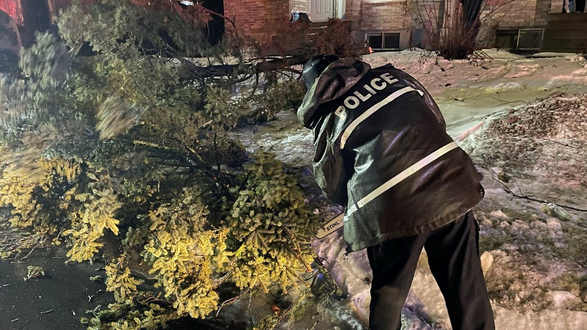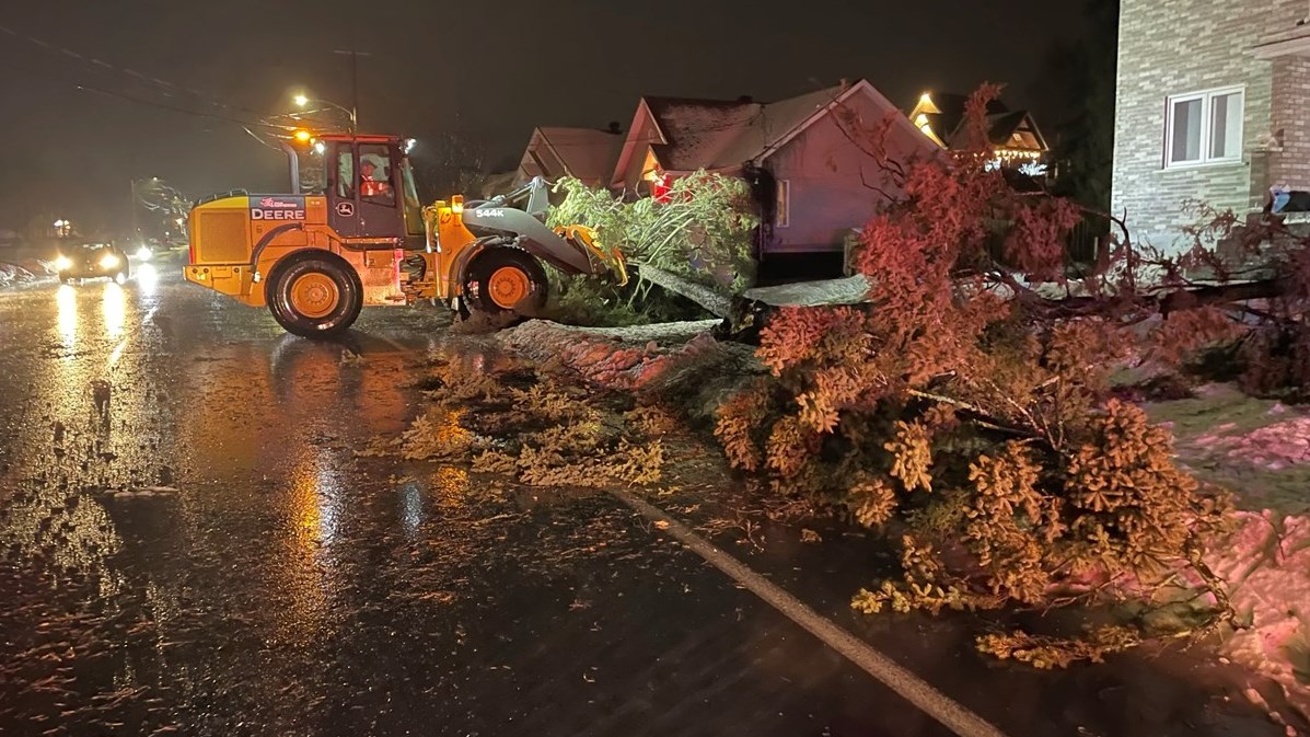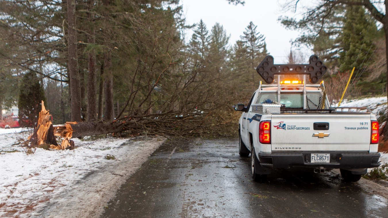 Arbre tombé sur la chaussé sur la 15e Avenue à Saint-Georges
