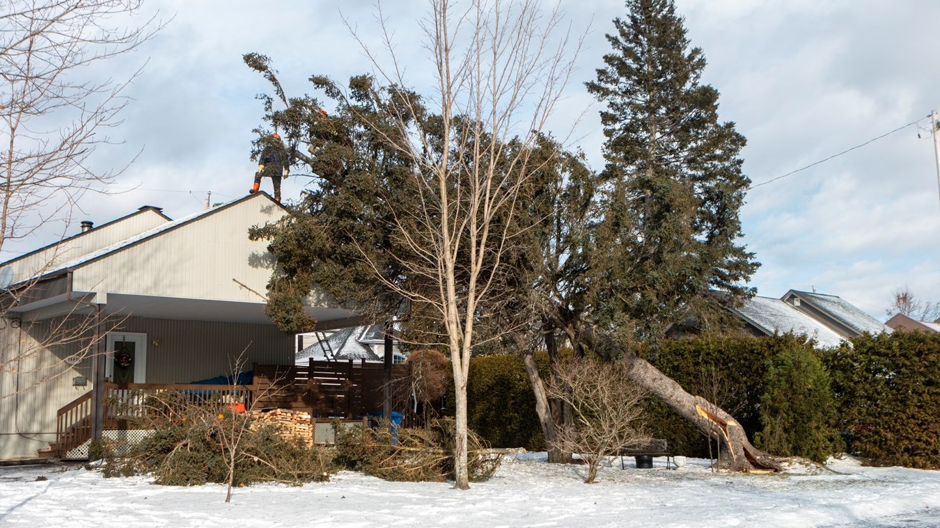 Arbre tombé sur une résidence de la 12e avenue à Saint-Georges