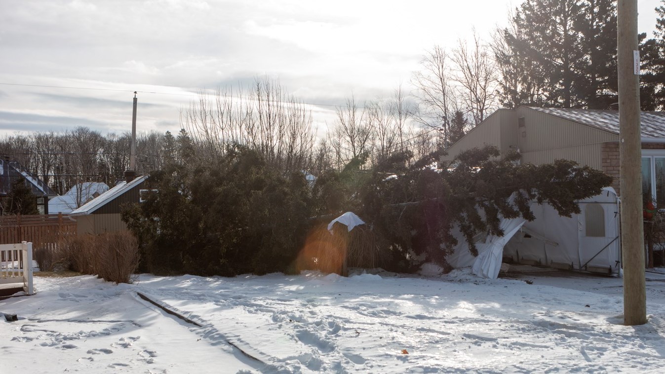 Arbre tombé sur un abri tempo de la 159e rue à Saint-Georges