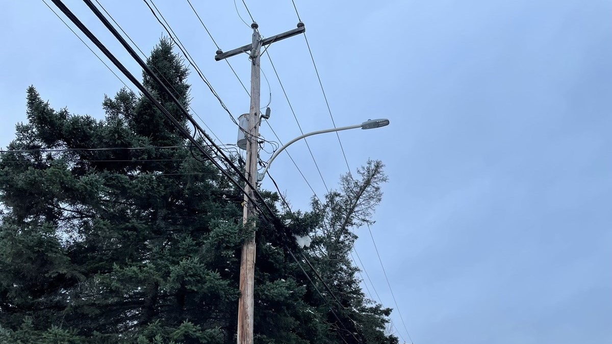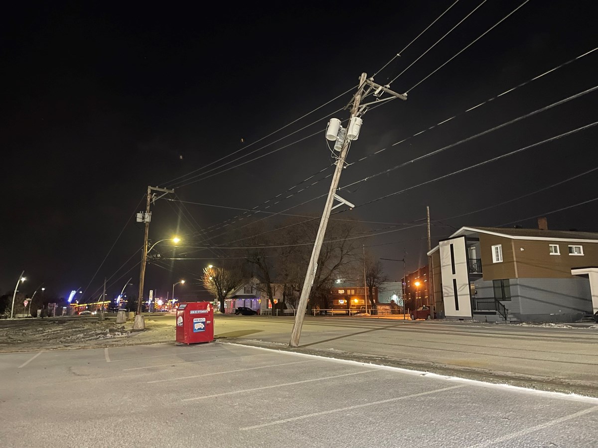Poteau d'Hydro-Québec cassé sur la 1re avenue à Saint-Georges