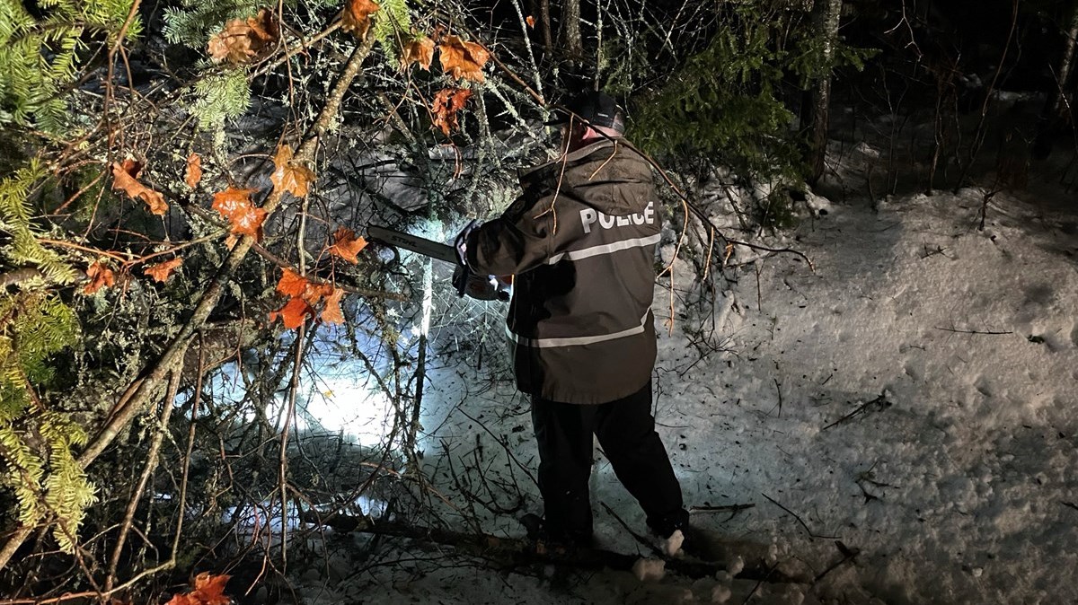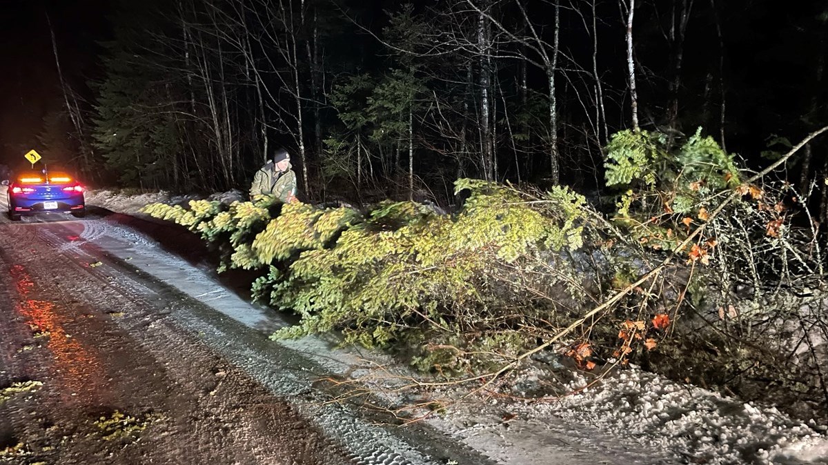 Arbre tombé sur la chaussé sur la route Veilleux-Potvin à Saint-Simon-les-Mines