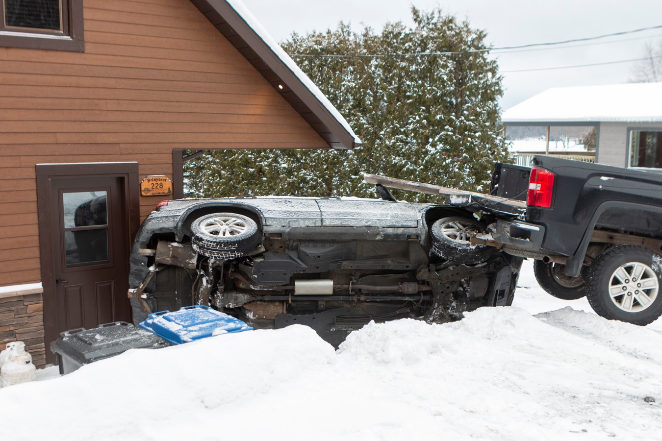 Un homme de 76 ans a effectué une fausse manoeuvre et a percuté une résidence de la rue Laflamme à Lac-Poulin, ce mercredi vers 13 h 45.