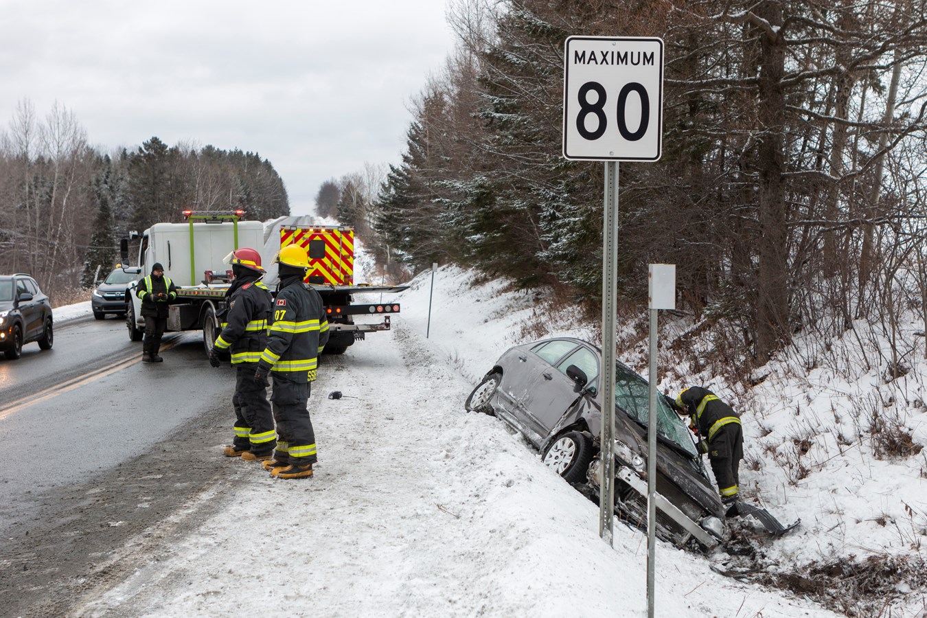 Également aujourd'hui, un véhicule, qui circulait direction Saint-Georges, a fait une sortie de route au niveau du 554 avenue Lambert à Beauceville, vers 13 h 20.